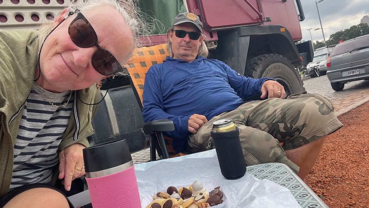 Ein wenig die Strasse rauf sitzt eine argentinische Gruppe Wohnmobilisten zusammen, wir werden eingeladen, rüberzukommen. Alle sind so freundlich hier.