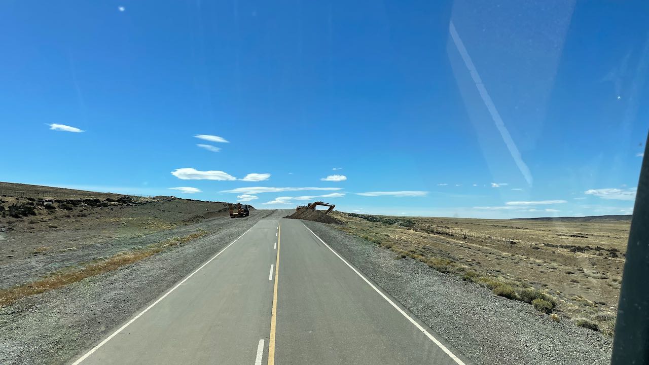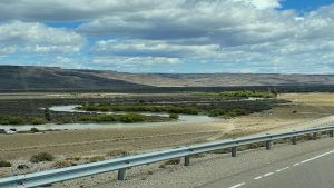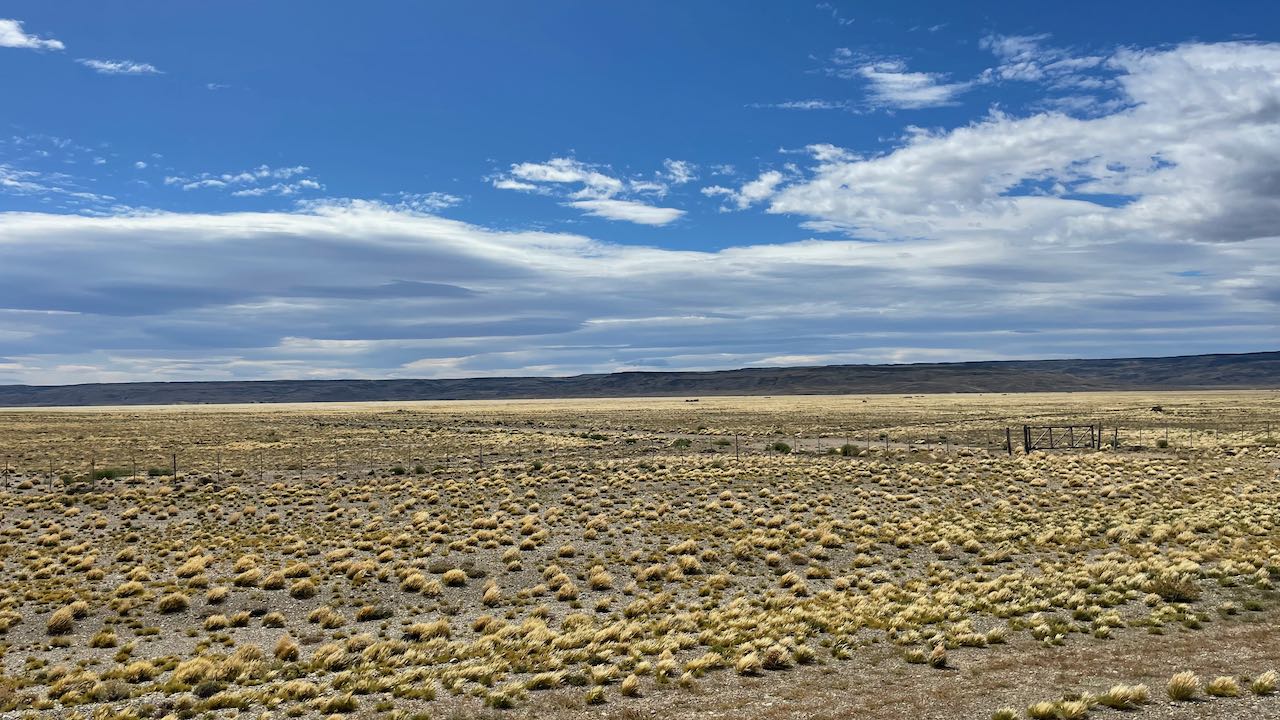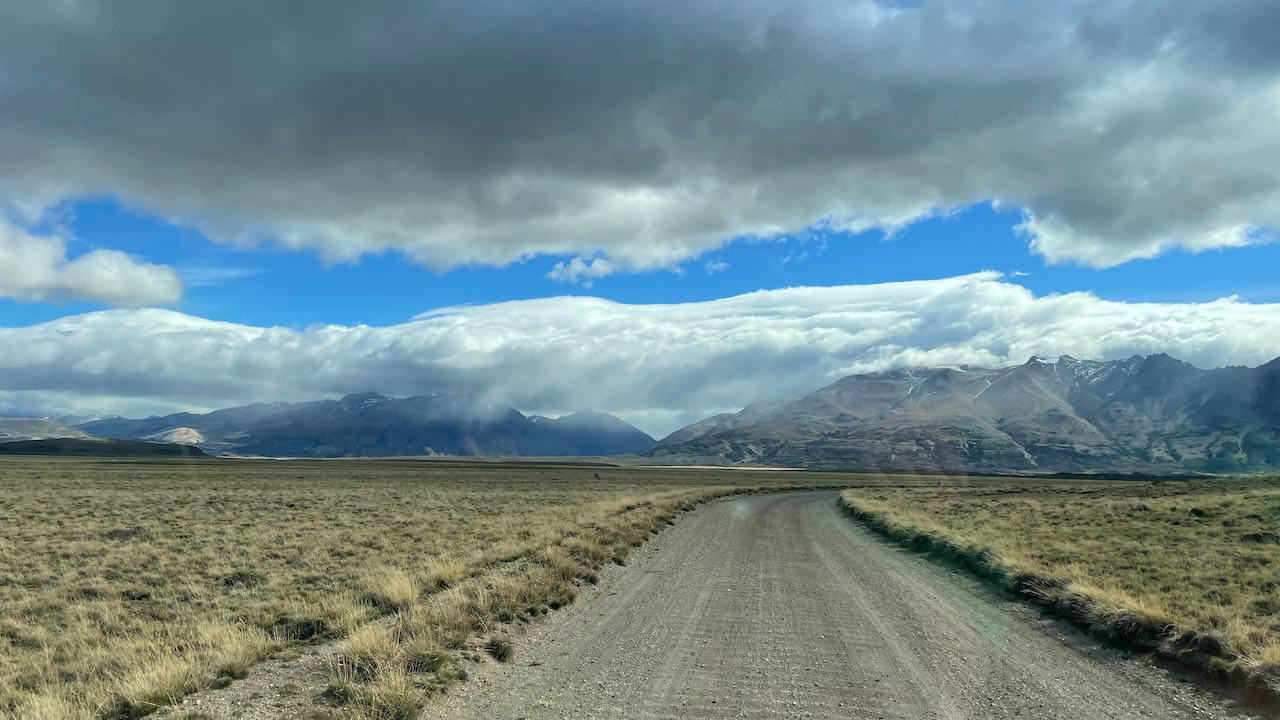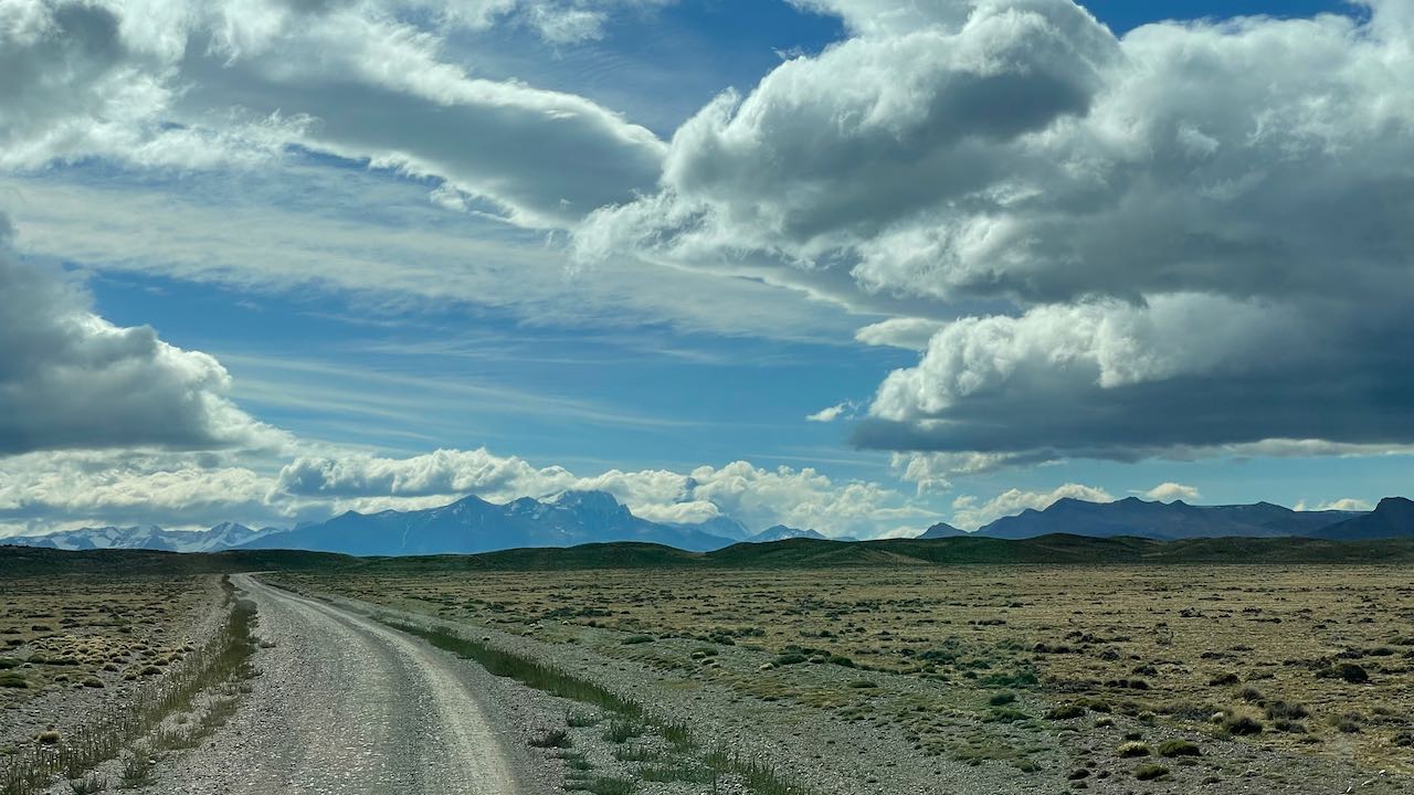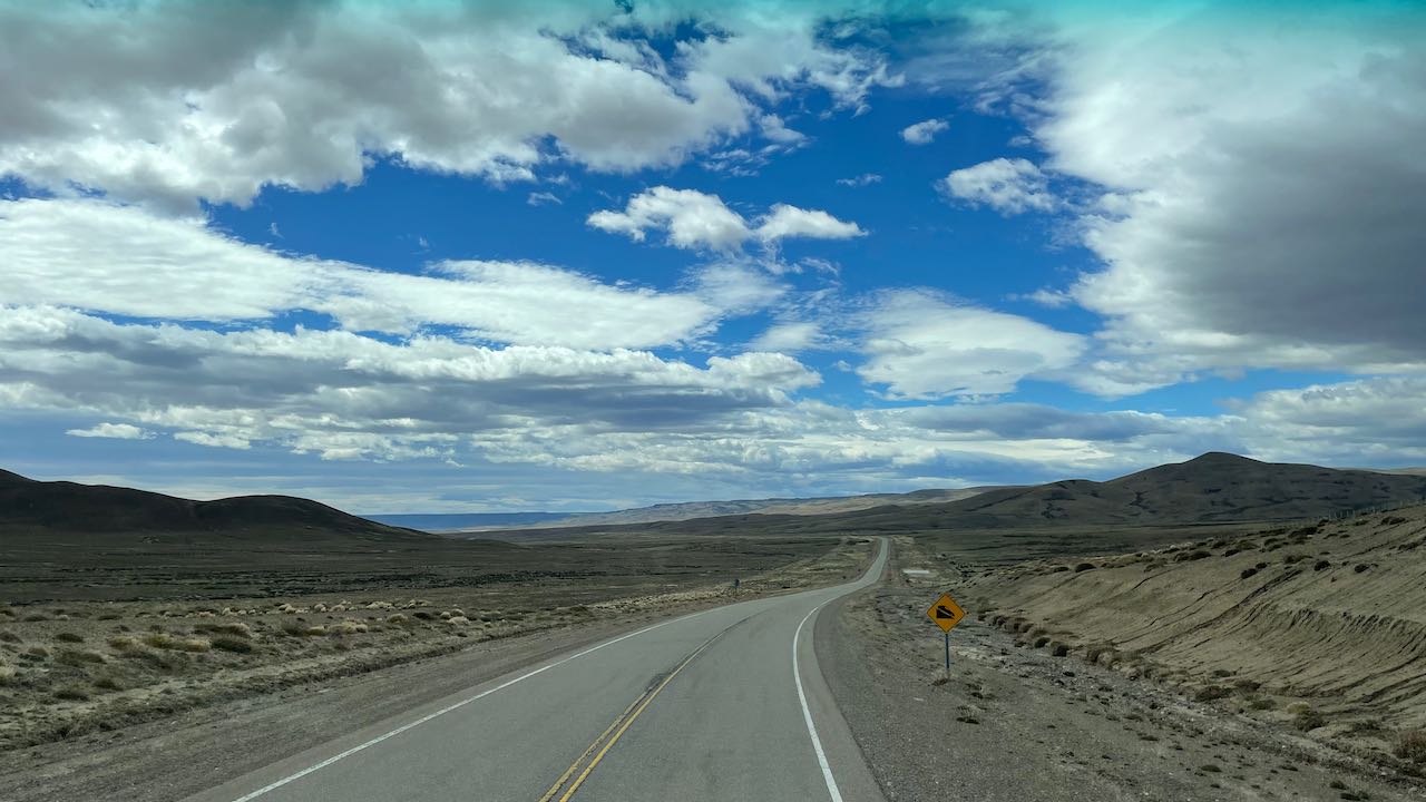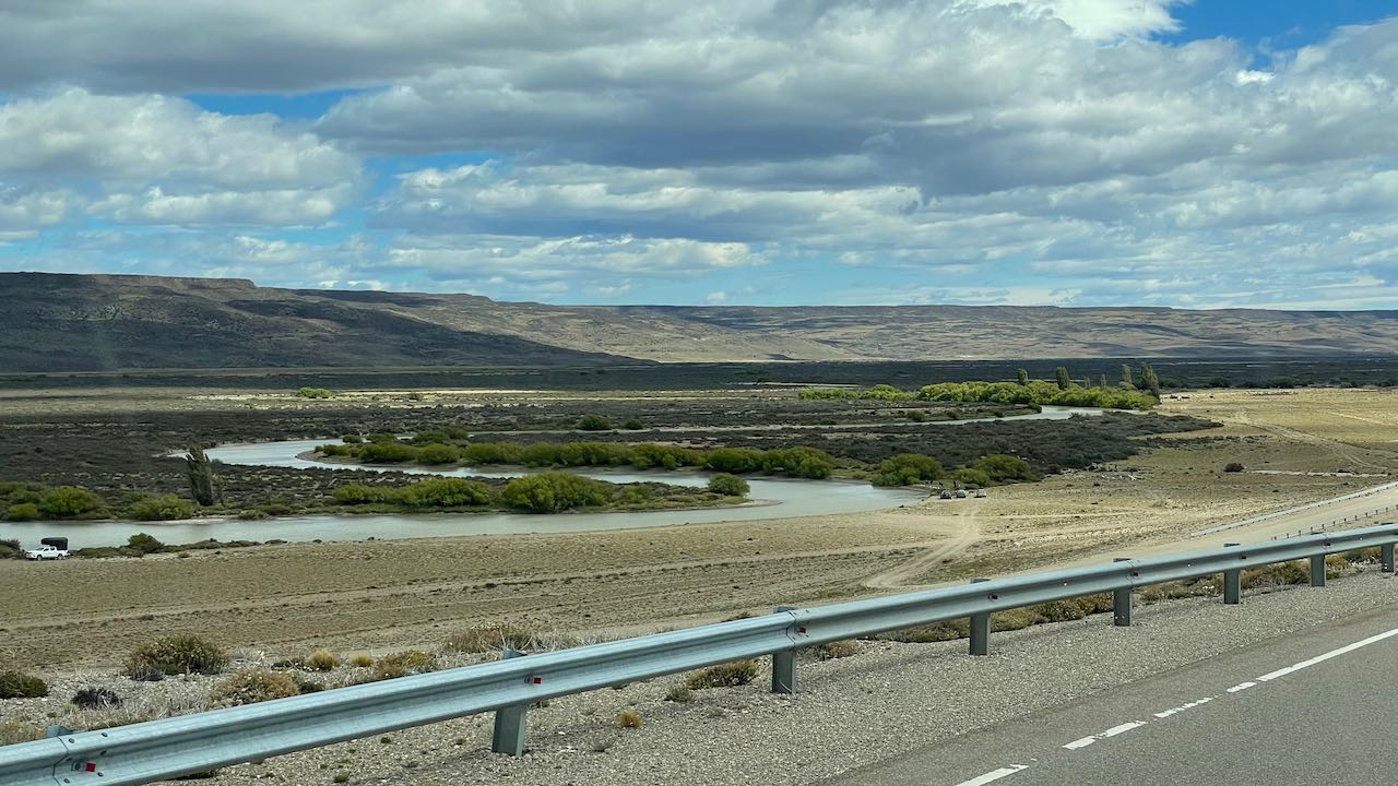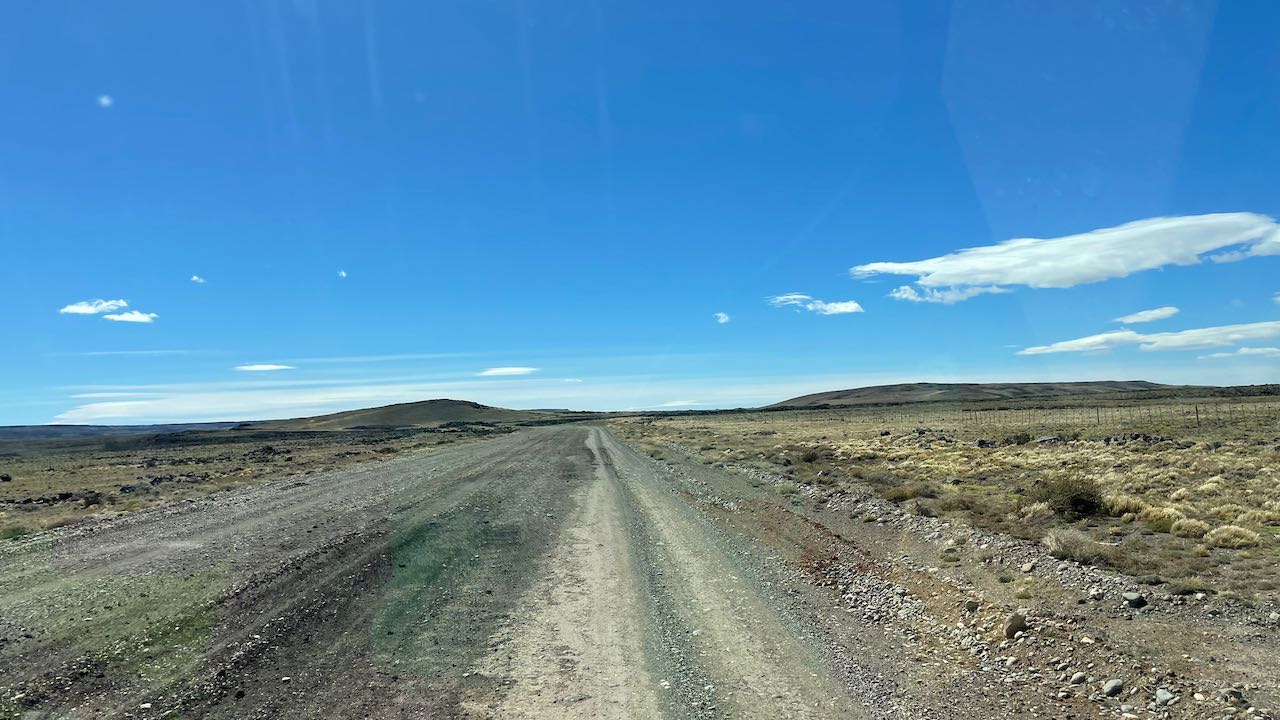 Braunschlammige Seen, von Flüssen durchzogene Wiesen, Pampa weit und windig, eine wie immer endlos wirkende Strasse