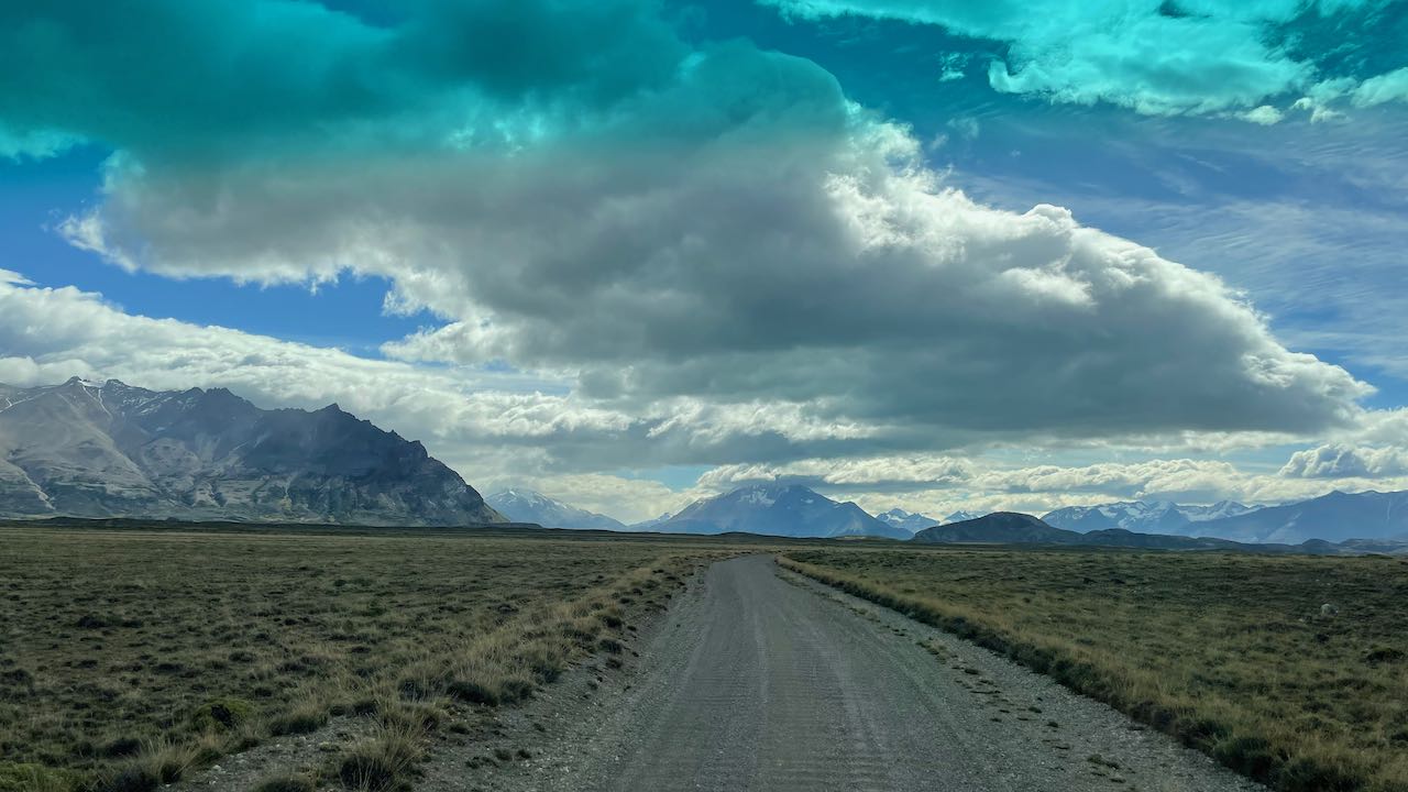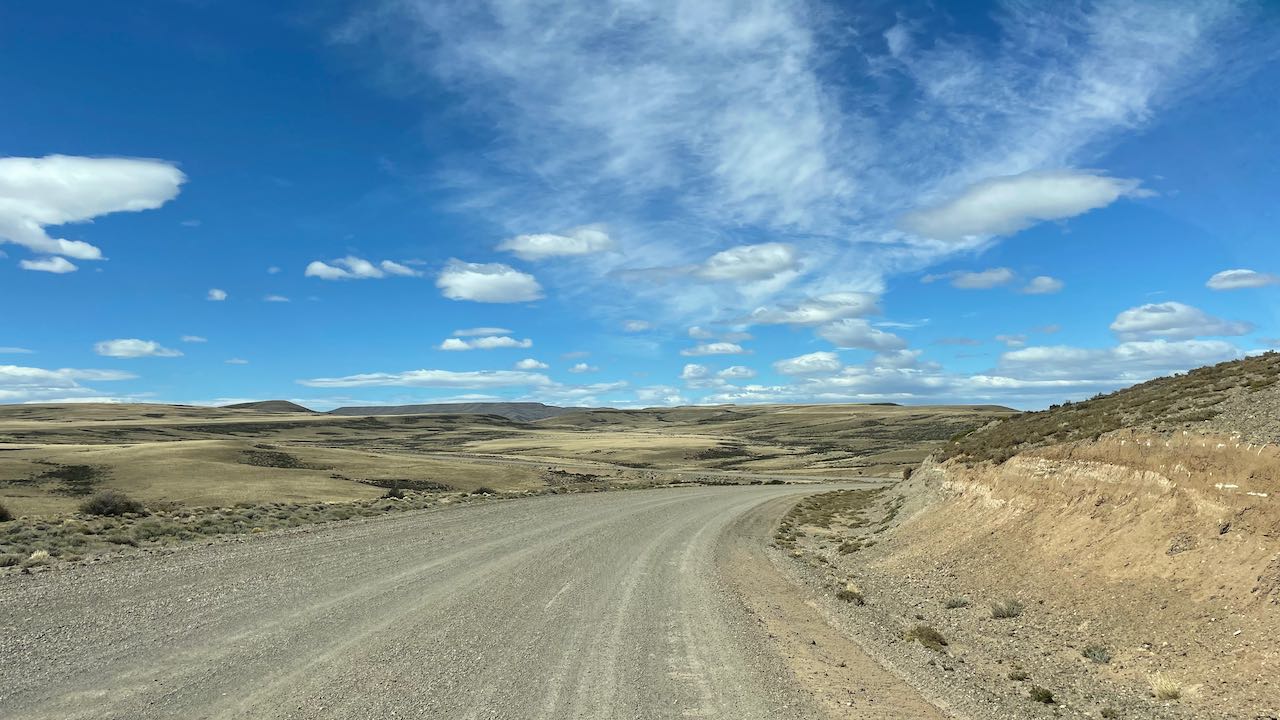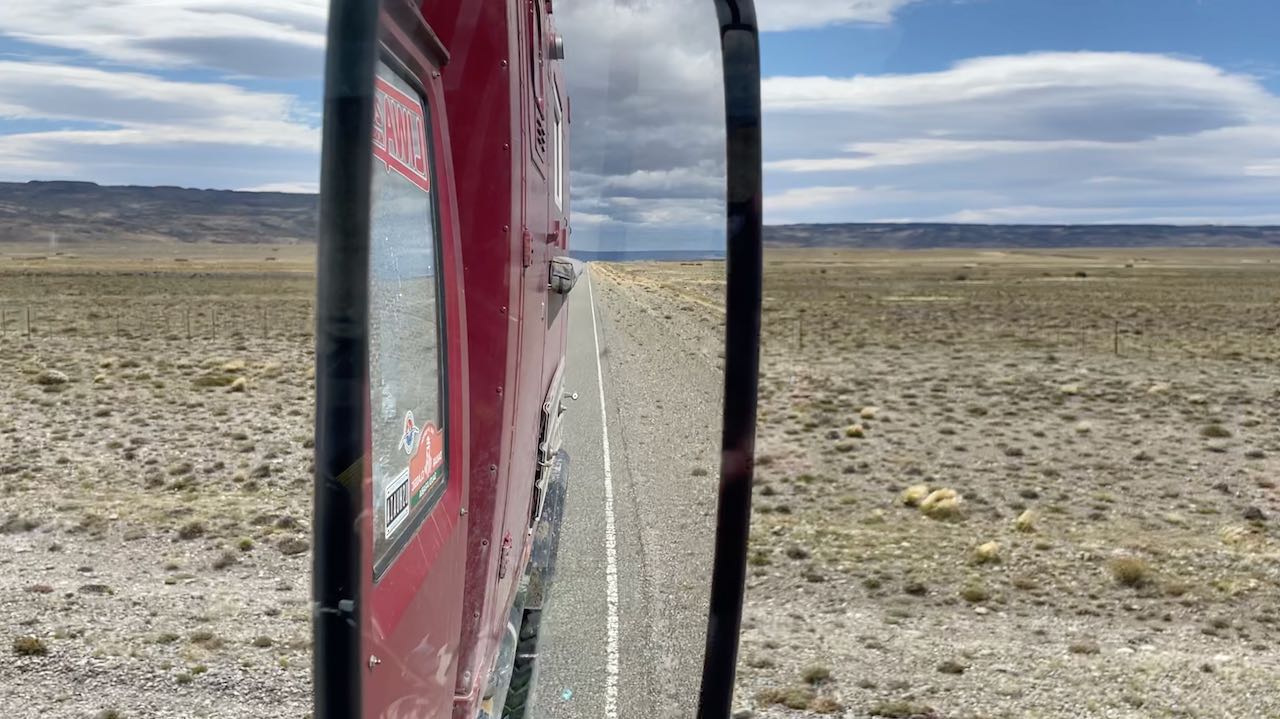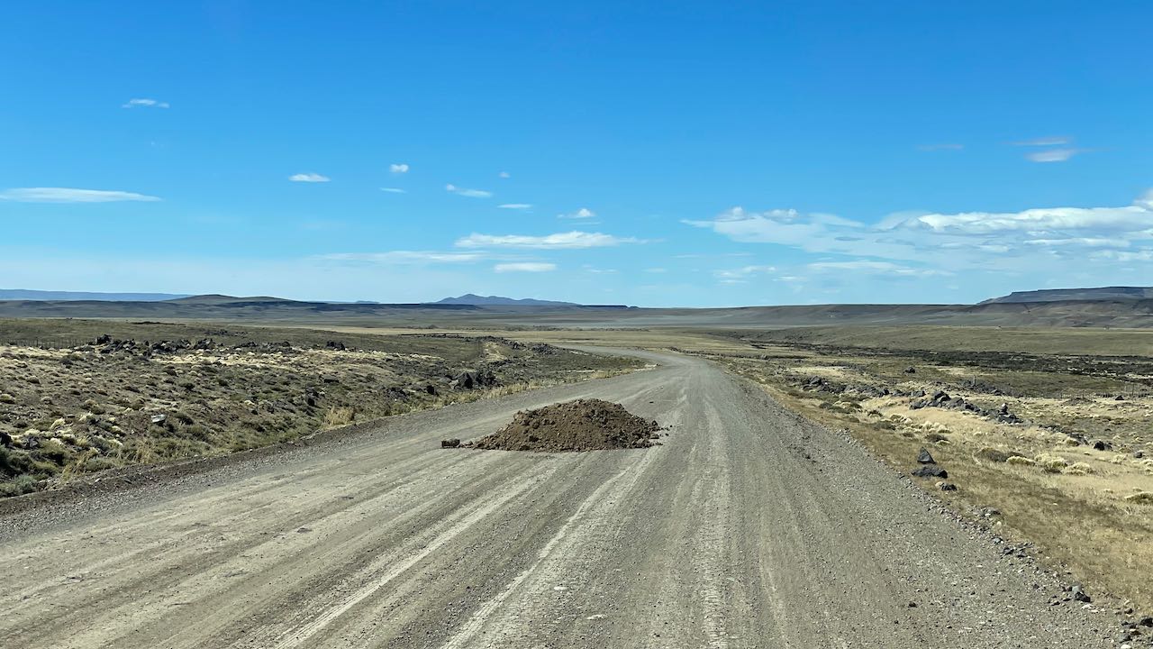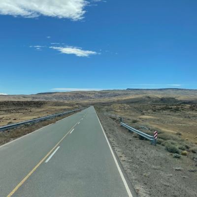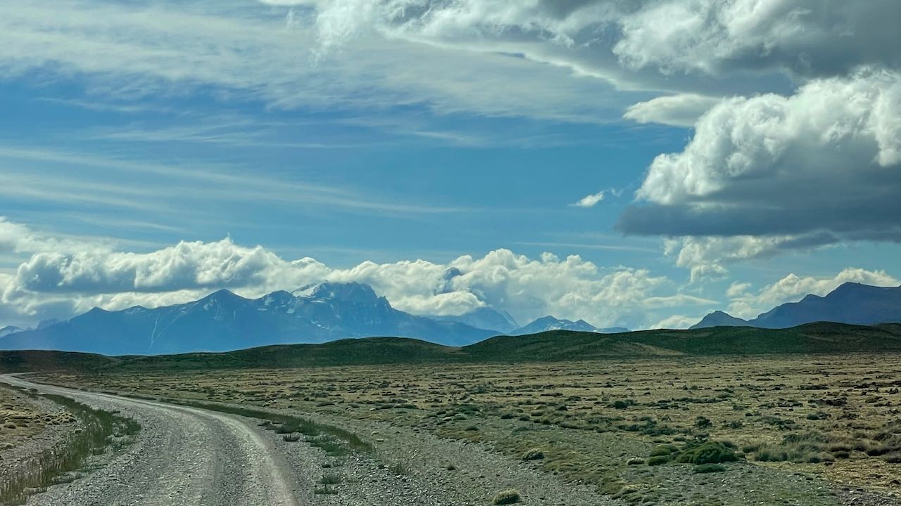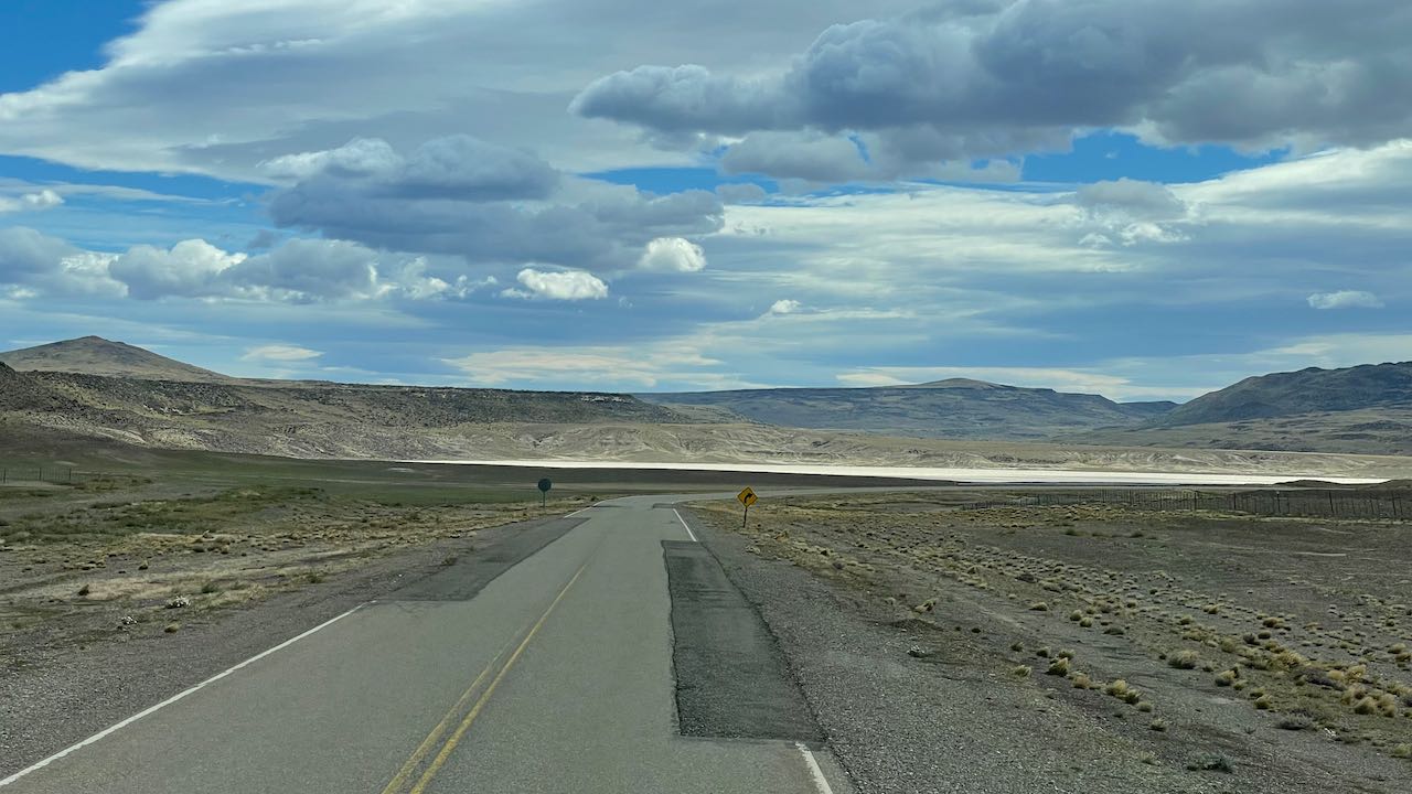 Braunschlammige Seen, von Flüssen durchzogene Wiesen, Pampa weit und windig, eine wie immer endlos wirkende Strasse