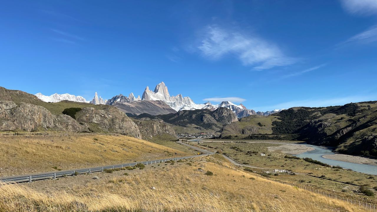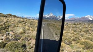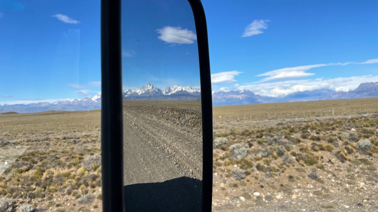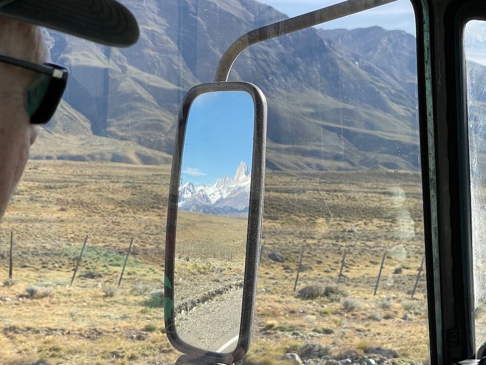 Noch über viele Kilometer sehen wir den Fitz Roy im Rückspiegel.