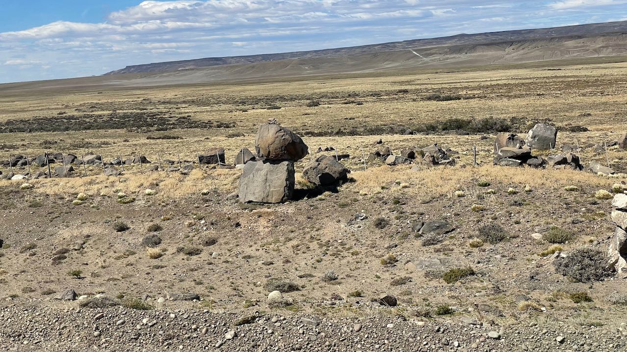 Am Wegrand liegen große Findlinge, manche sind zu Kunstwerken aufgeschichtet. Sieht so aus, als hätten die Strassenbauer mit ihrem Bagger eine kreative Phase ausgelebt.