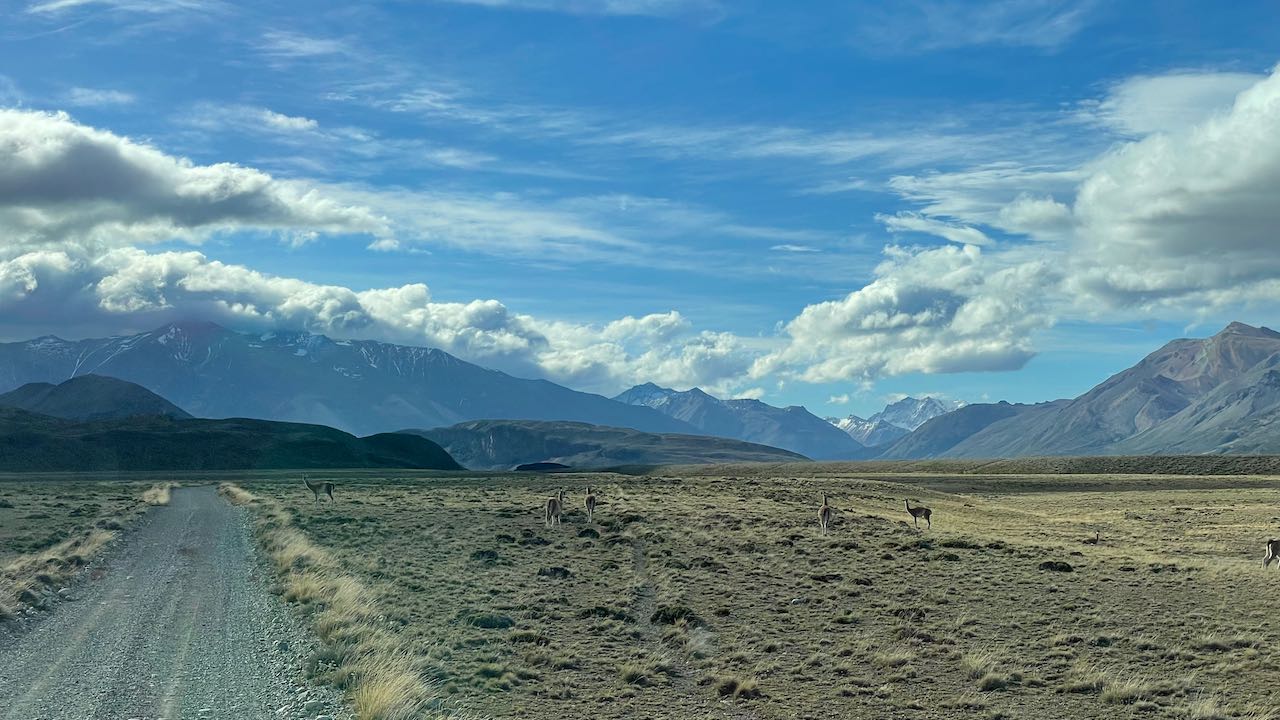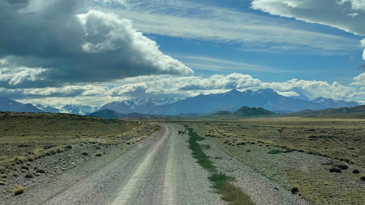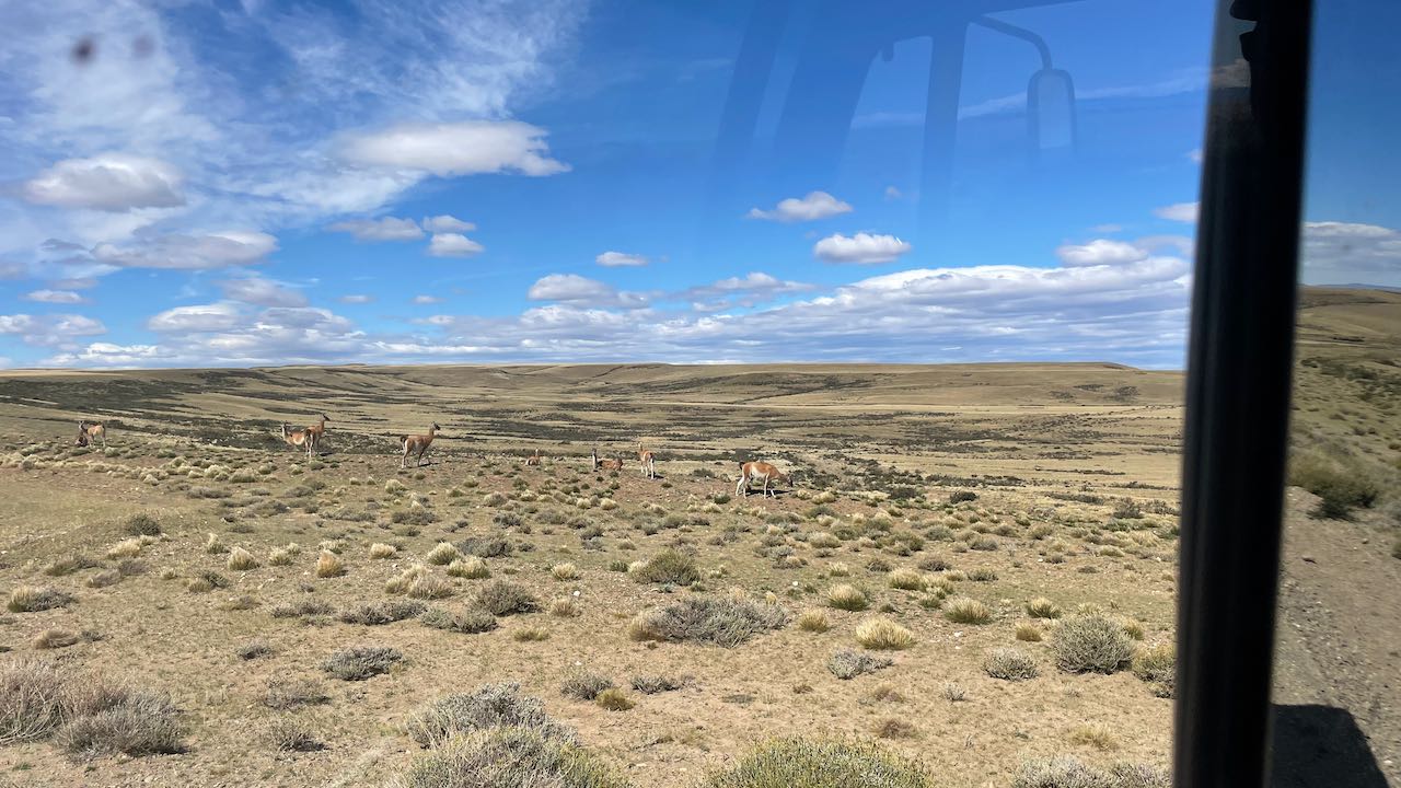Guanakos in Seelenruhe. Nach zwei Stunden Fahrt der Abzweig zum Perito Moreno Nationalplark