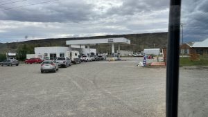 Martin guckt morgens noch Ski-WM, dann stellen wir uns in die Schlange vor den Zapfsäulen und machen schließlich alle Tanks voll.