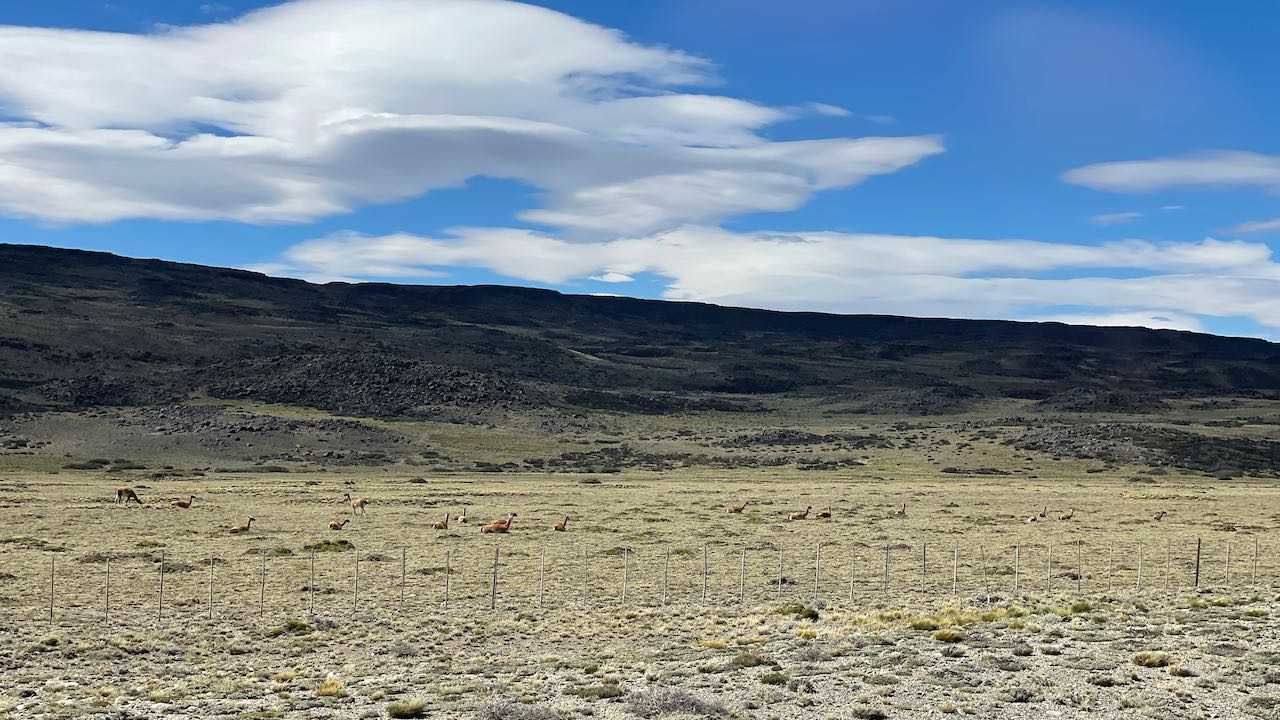 Viele Guanakos, die meisten sehr lebendig, doch wir sehen auch ein paar tot überm Zaun hängen.
