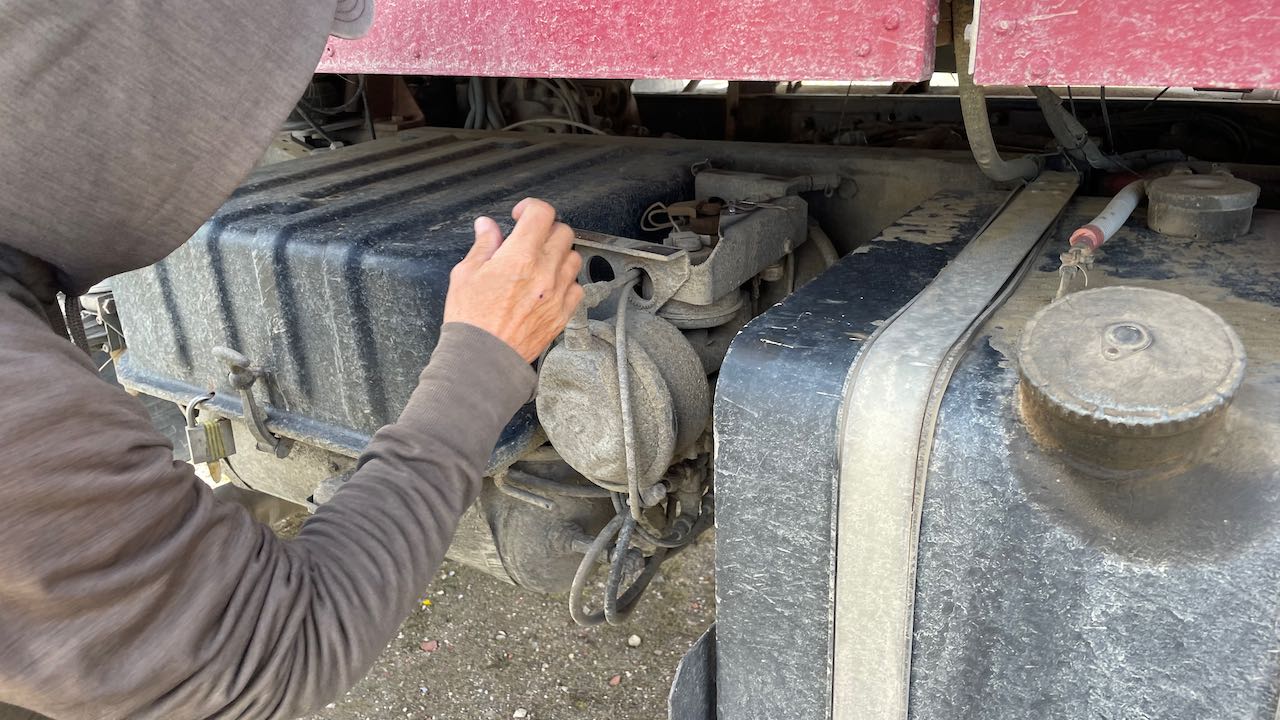 Zurück beim Steyr entdeckt Martin, das wir die Abdeckung von den Bremsflüssigkeitsbehältern verloren haben. Verdammt.