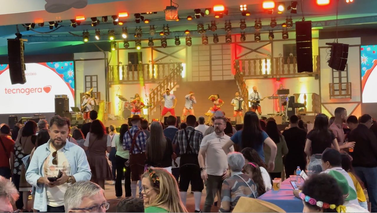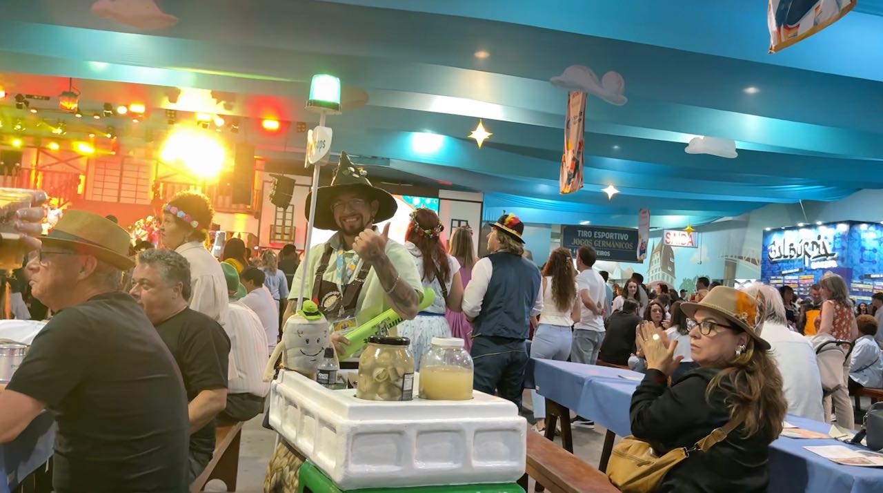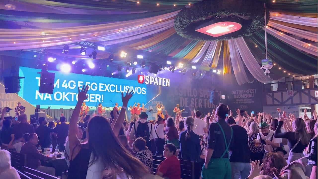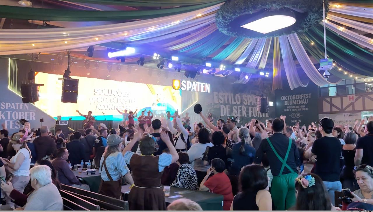 Aus den Boxen schallt eine Techno Version vom Blumenaulied „🎶das geht nach Blumenau….da ist der Himmel blau…🎶“