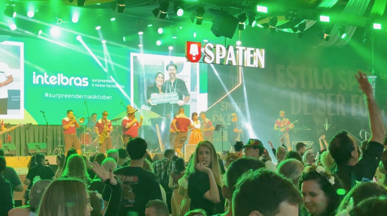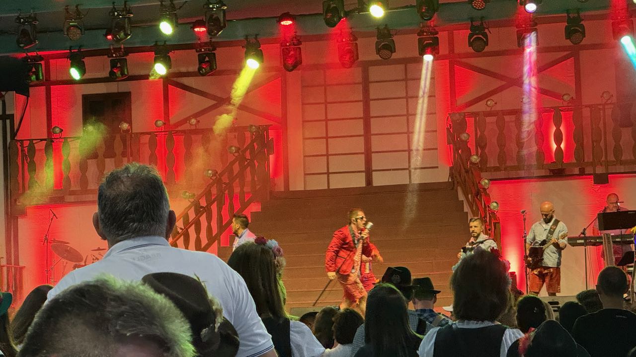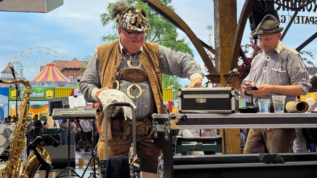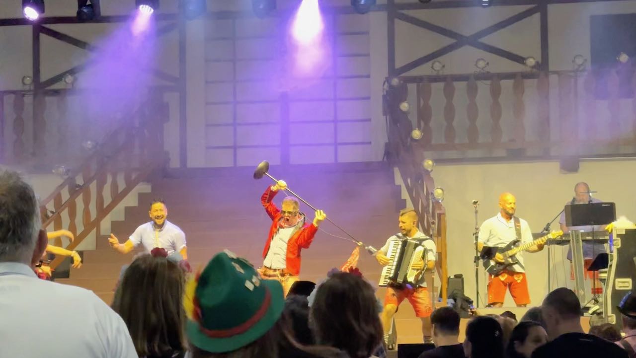 Die Band in der Festhalle sorgt für Stimmung „🎶Rock´n´Roll und Weißbier…🎶 zur Melodie von „I am looking for freedom…“
