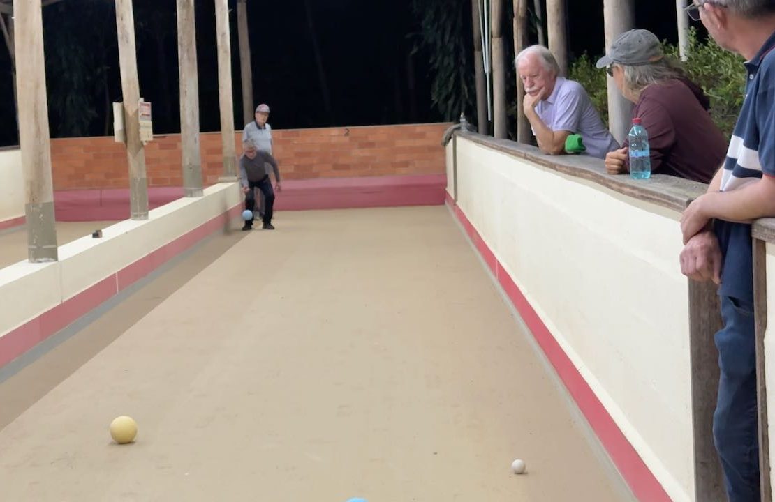 Auf der Bocciabahn wird noch gespielt, wir unterhalten uns nett, alle sprechen deutsch. Sie nennen sich selber Deutschverderber, weil sie die Sprache nicht perfekt beherrschen, meinen sie. Können wir ihnen nicht zustimmen, sie sprechen sehr gut.