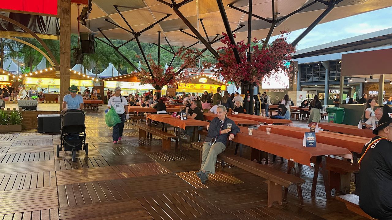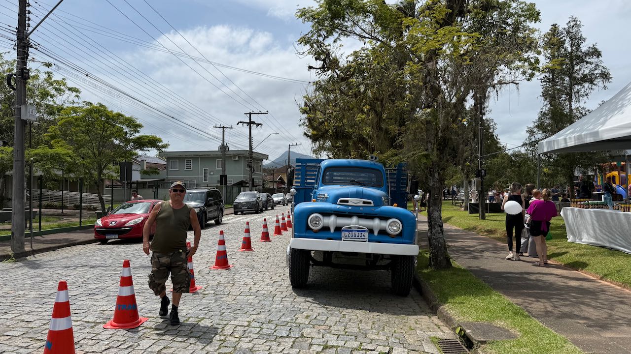 In Pomerode ist Marathon-Wochenende. Morgens füllt sich schnell der Parkplatz, wir laufen los zu einem Stadtbummel.