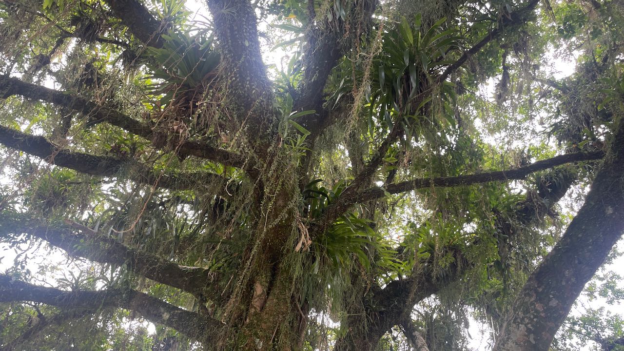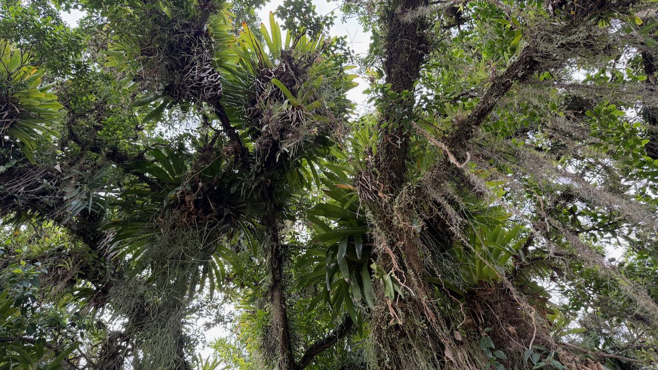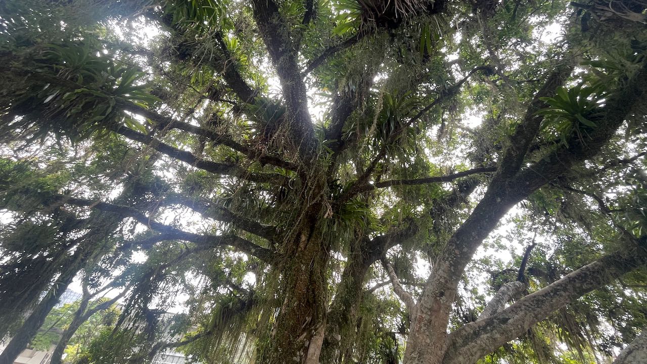 Langsam wandern wir zurück, unter Bäumen voller Pflanzenlametta