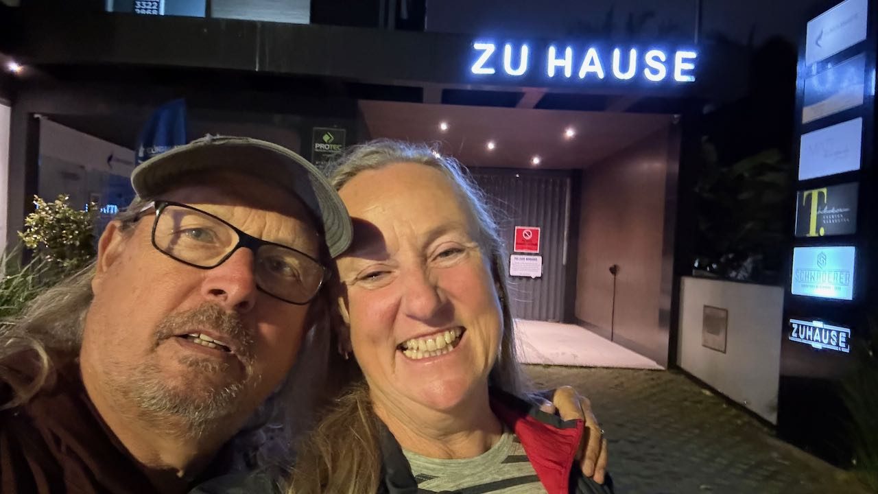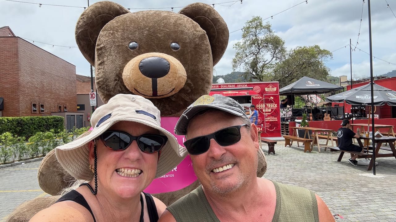 Die Kneipe Schornstein ist gut besetzt, deutsche Volksmusik dudelt über die Strassen. Alle machen Selfies mit dem Riesenteddy, wir natürlich auch.