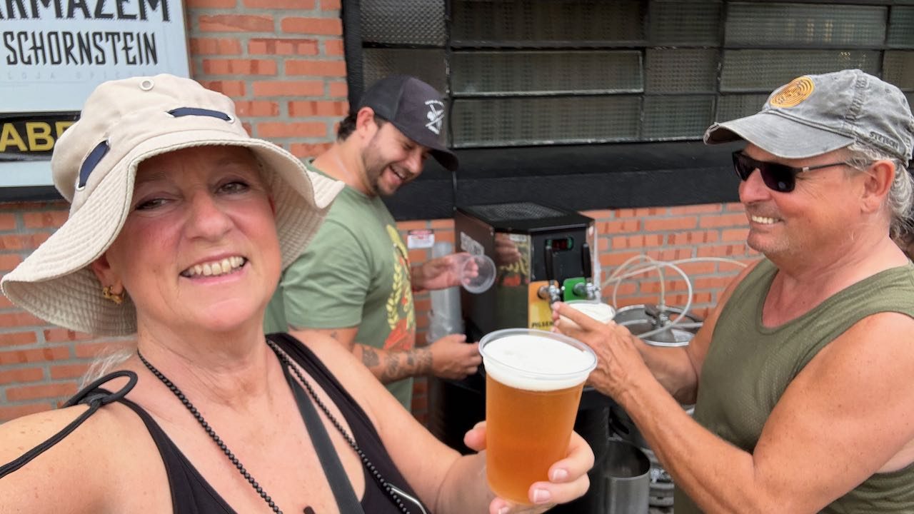 Bei der Schornsteinbrauerei wird draußen gezapft, das müssen wir probieren