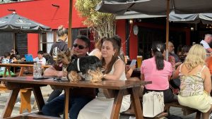 Hund auf dem Tisch? Kümmert hier keinen. Die Hunde“mama“ zeigt ihrem Fiffi immer wieder etwas auf dem Hendi, vielleicht Katzenvideos….