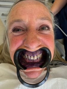 Die Zähne werden zuerst gefärbt, das sieht lustig aus: