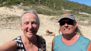 Wir sitzen auf den Steinen am Ufer und schauen raus auf die Bucht. Noch ein paar Womos kommen an. Stühle und Grills werden aufgebaut, ein fröhliches Geplauder um uns herum, der Parkplatz wird ruckzuck zum Campingplatz. Sehr gemütlich, wir fühlen uns sehr wohl in der kleinen Campergemeinschaft, alle sind sehr nett.