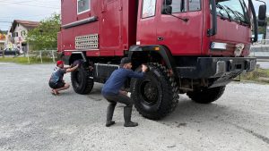 Zum Schluß noch Spezial – Reifenpflege, da arbeitet sogar der Jefe mit.