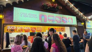 Getränke und Essen werden mit der Oktoberfestkarte bezahlt, die wollen wir jetzt besorgen. Unsere Begleiterin übersetzt am Kassenschalter, englisch, portugiesisch, hin und her, bis die Kassendame plötzlich sagt: „Ach ihr seid aus Deutschland? Dann können wir deutsch sprechen!“