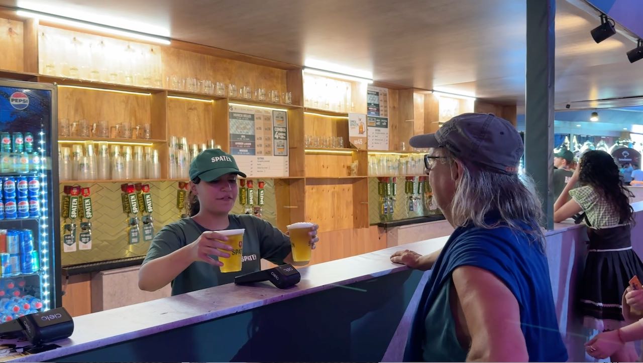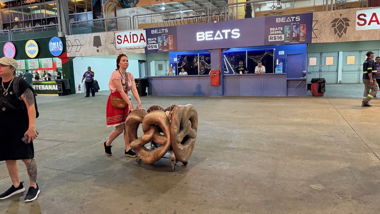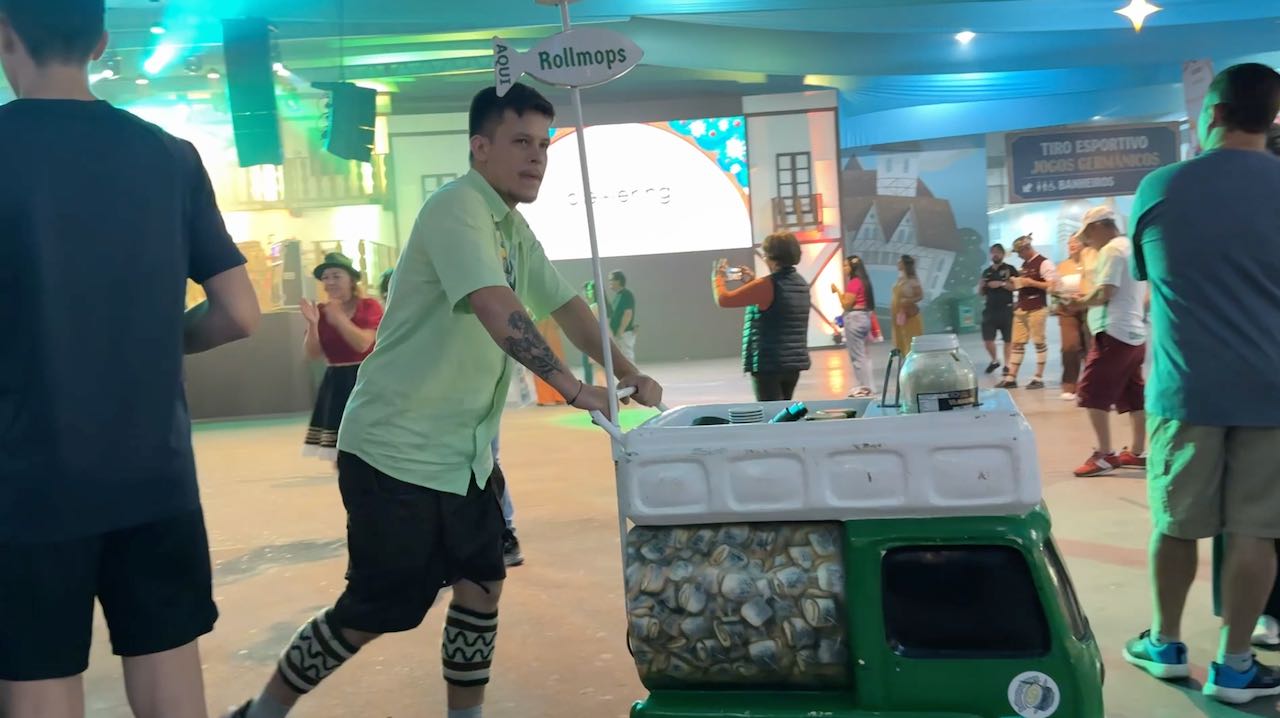 Getränke und Essen werden mit der Oktoberfestkarte bezahlt, die wollen wir jetzt besorgen. Unsere Begleiterin übersetzt am Kassenschalter, englisch, portugiesisch, hin und her, bis die Kassendame plötzlich sagt: „Ach ihr seid aus Deutschland? Dann können wir deutsch sprechen!“