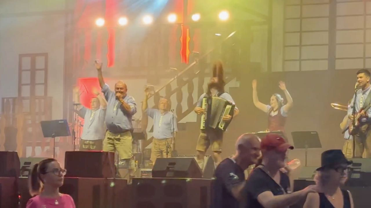 Auf dieser Bühne geht´s ab, bayrische Volksmusik, wir holen noch ein Bier und feiern mit. Der Akkordeonspieler legt sich mächtig ins Zeug..