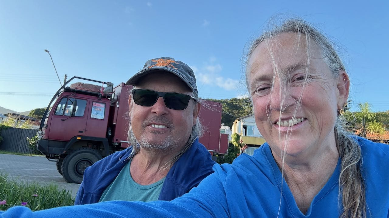 Ein Lkw überholt, bremst ab, bis er neben uns ist. Das Fenster fährt hinunter, der Fahrer winkt und filmt uns…Guck nach vorne, Junge!
