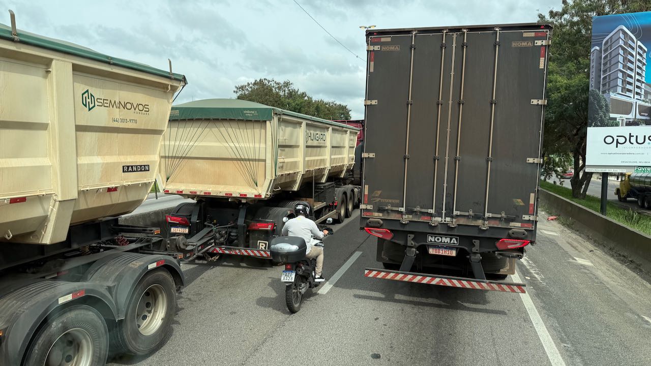 Lkws mit 30 Metern Länge, lebensmüde Motorradfahrer schießen zwischen den Lkws durch