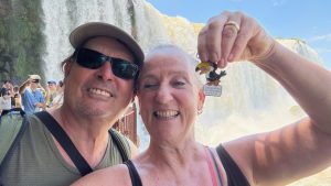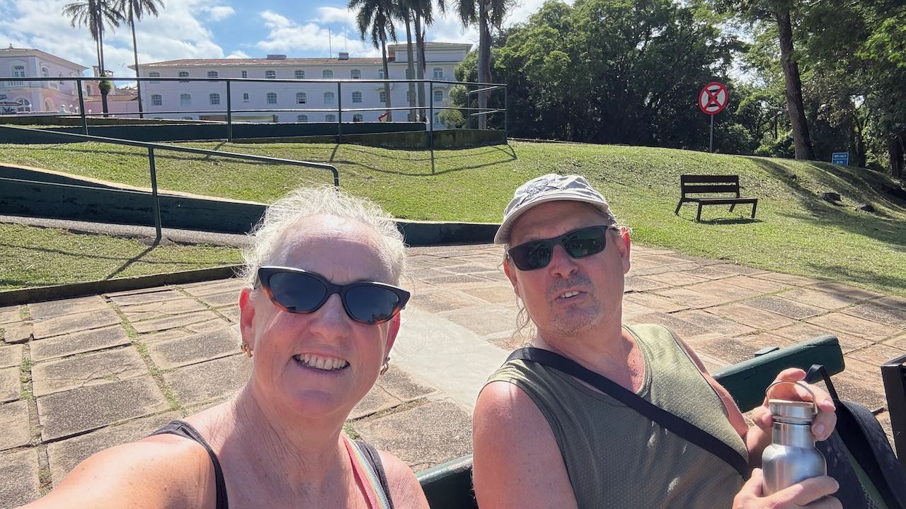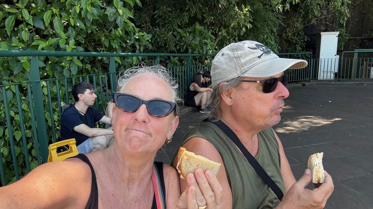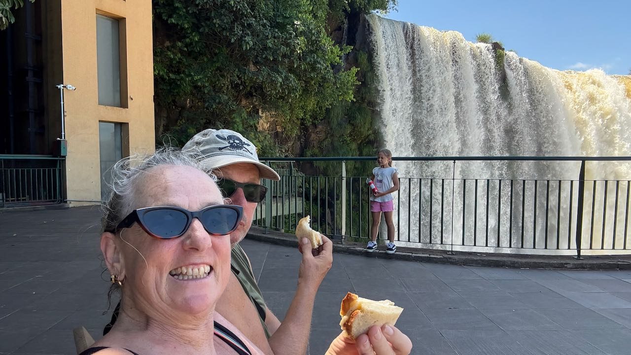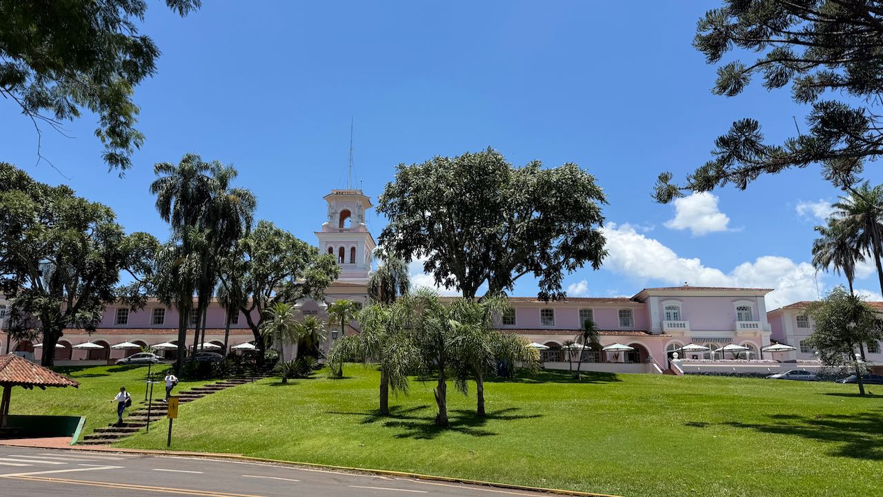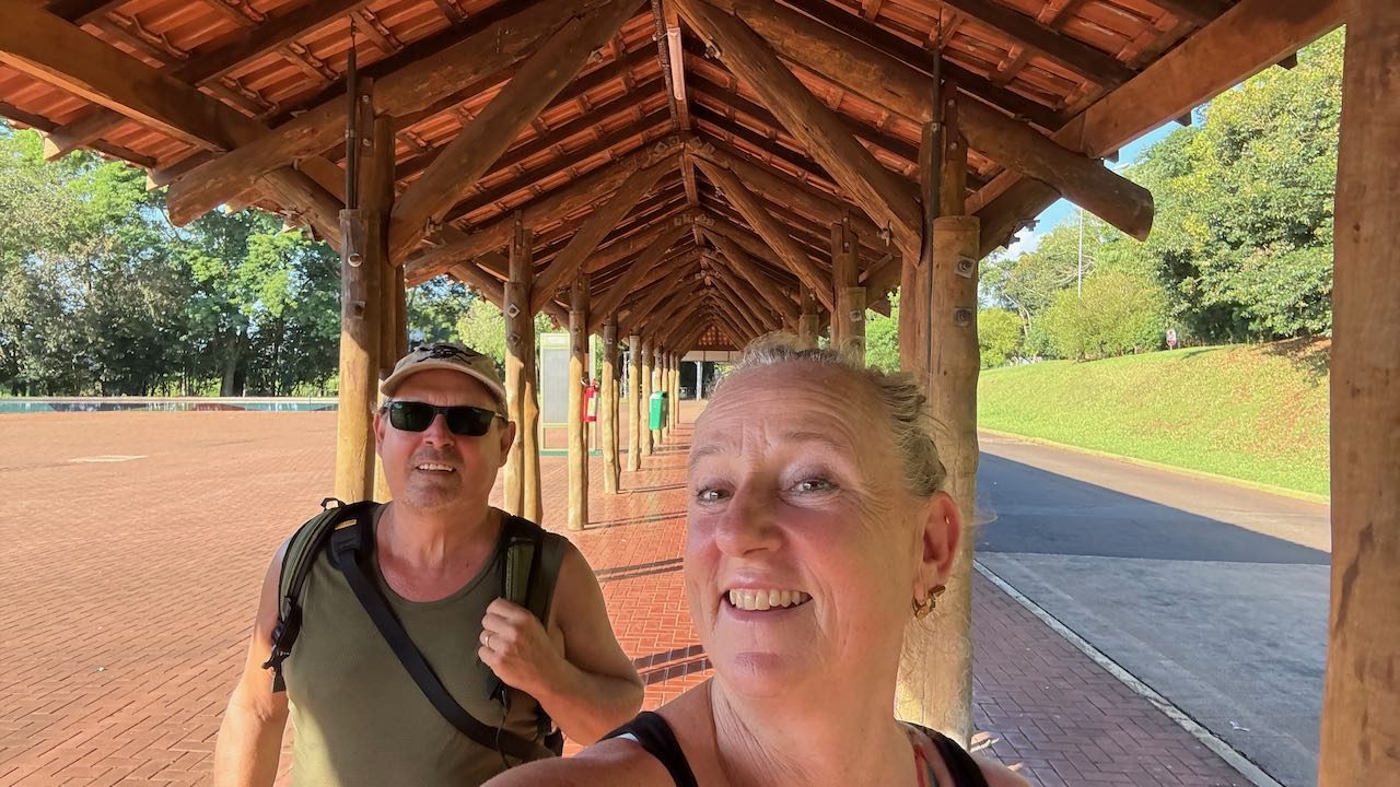 Beim rosa Hotel das Cataratas steigen wir aus.