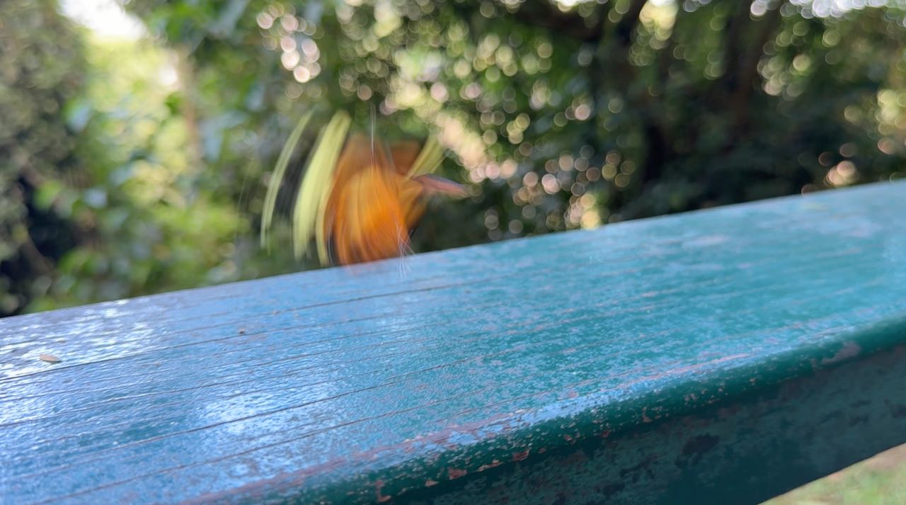 Beim losflattern zeigt er uns noch mehr von seinen wunderschönen Farben