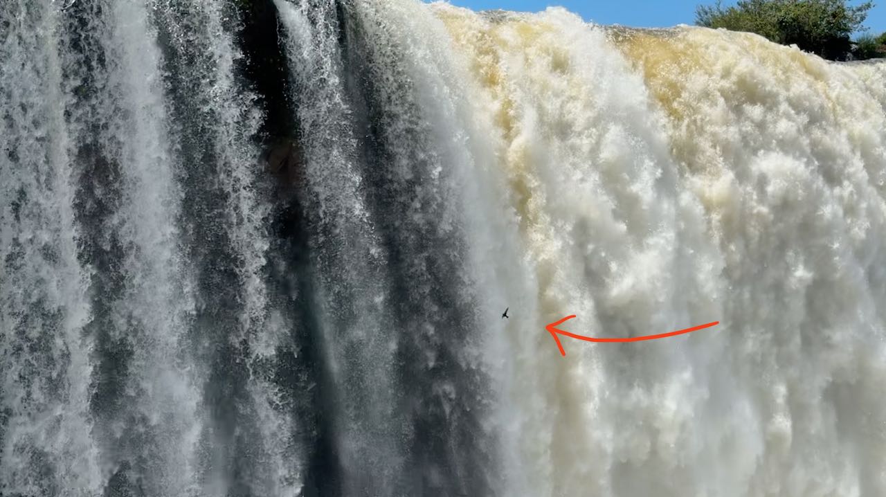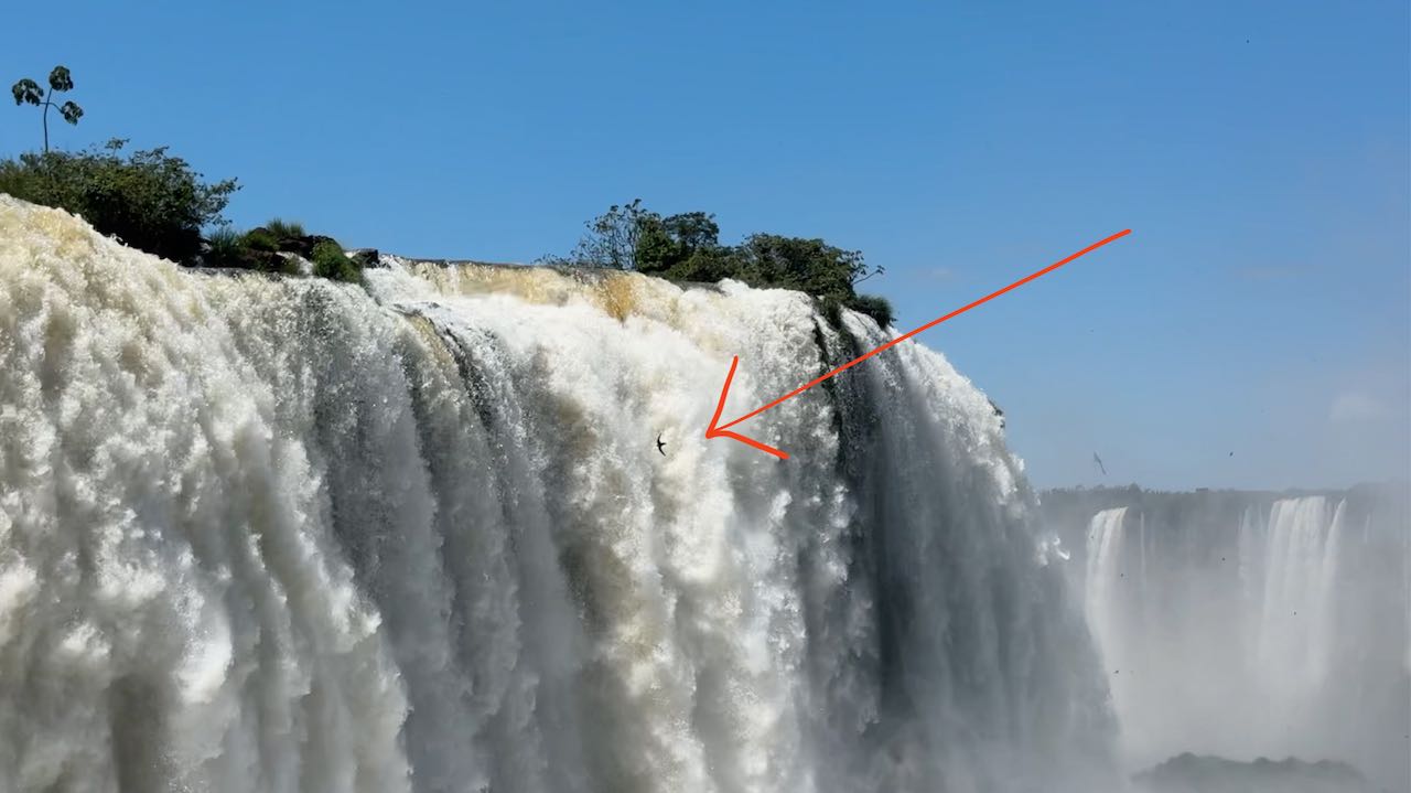 Hinter den Wasserwänden haben sie ihre Nester in die Felsen gebaut. So sind die Küken optimal vor Räubern geschützt, aber die Flugmanöver sehen lebensgefährlich aus.