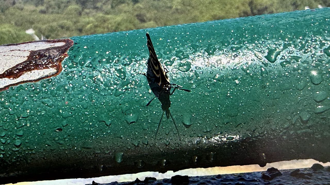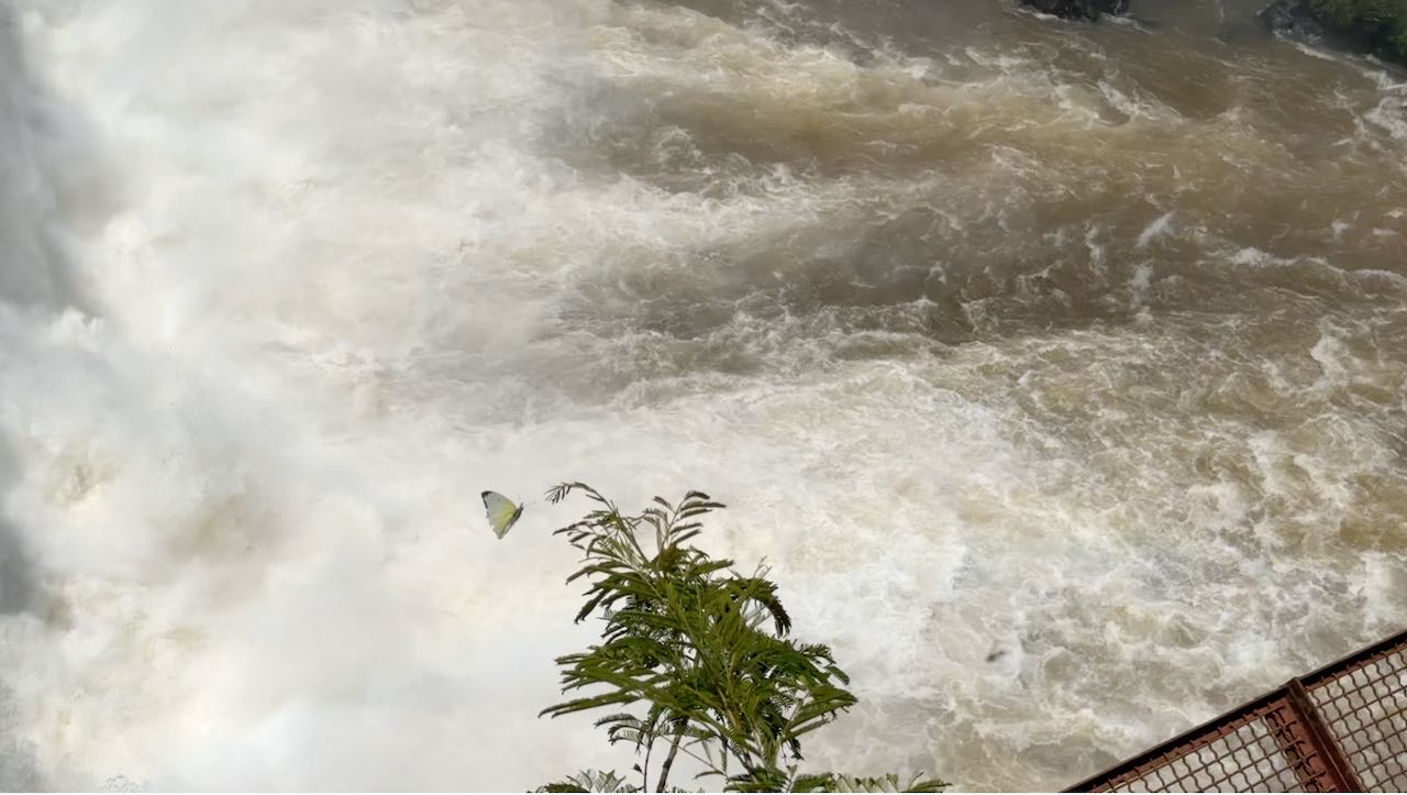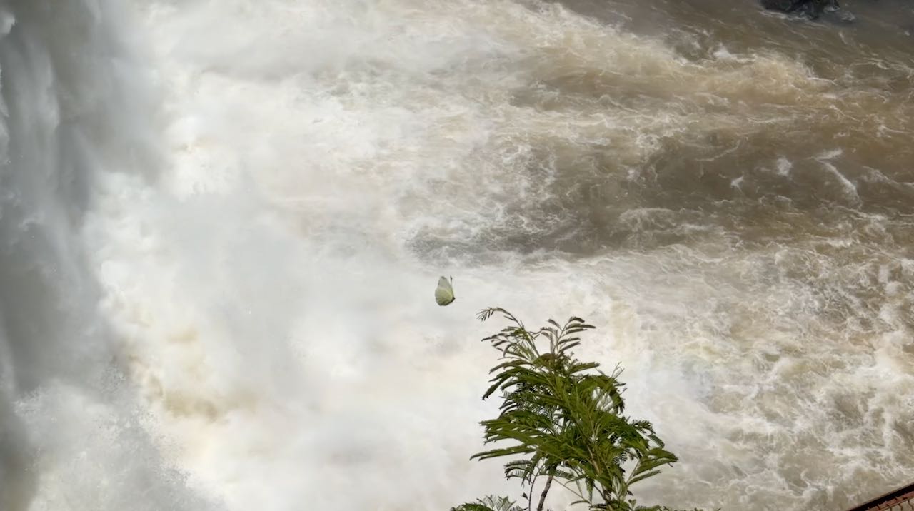 Falter trudeln durch die Gischt, sie scheinen die Feuchtigkeit zu lieben.