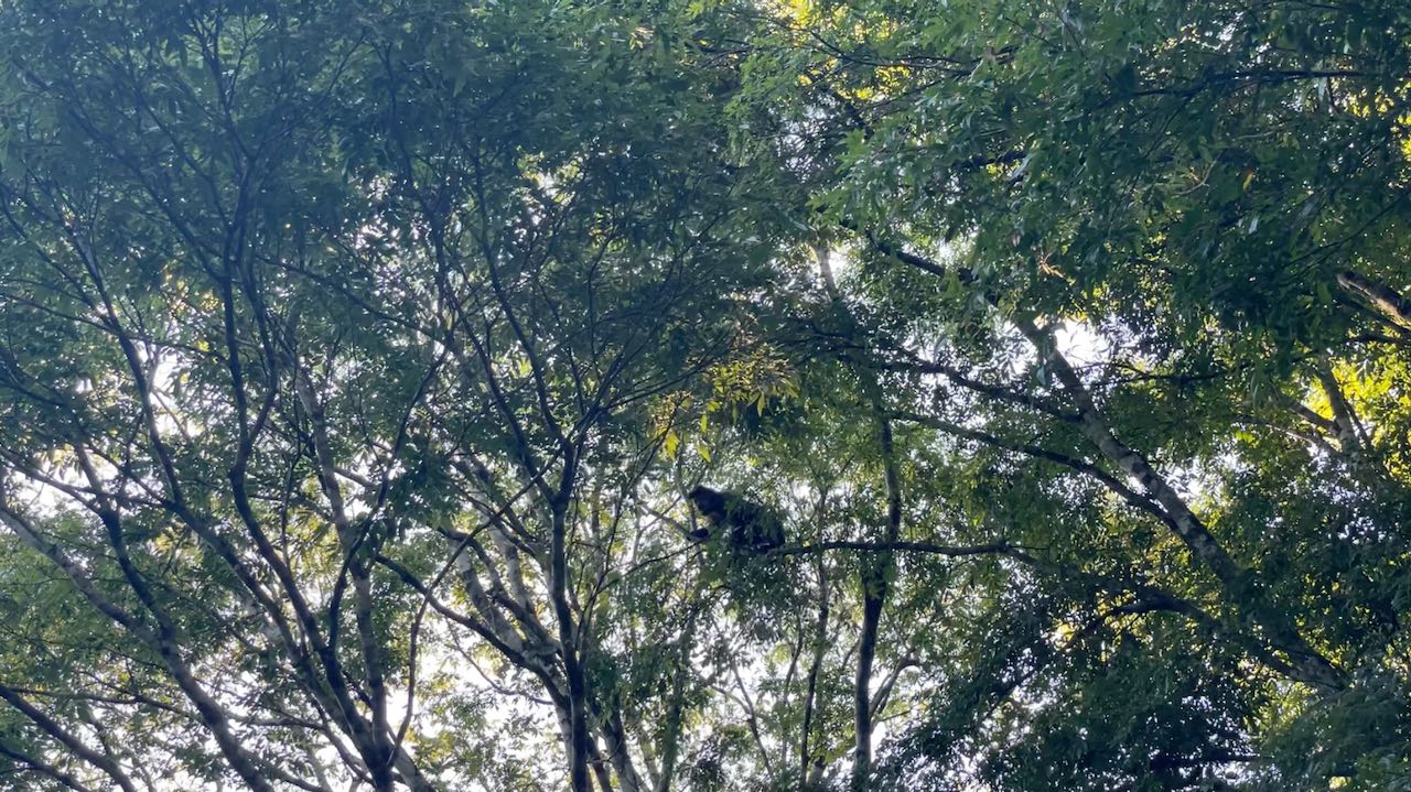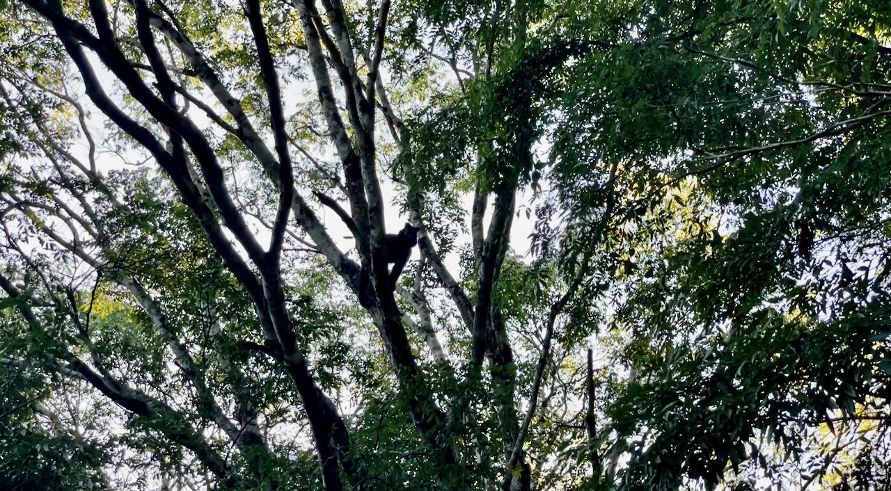 Affen turnen durch die Äste. Die Vögel finden das gar nicht gut und warnen laut!