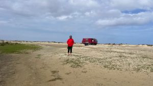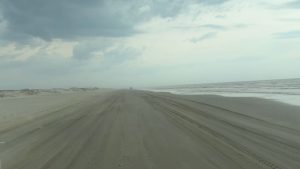 Vom Sturm ist der Sand noch ziemlich aufgeweicht. Die letzten 60 Kilometer Strandpiste.