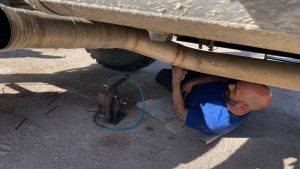 Jetzt wird´s spannend: die Probefahrt für die geflickte Geber/Nehmerleitung.