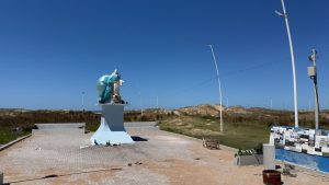 Das Kleid der Schutzheiligen bläht sich etwas unvorteilhaft im Wind…