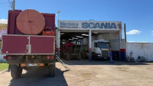 Wir finden eine vielversprechende Scania Schrauberbude.