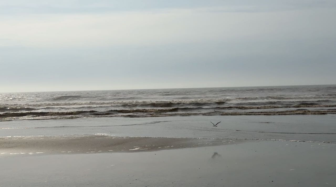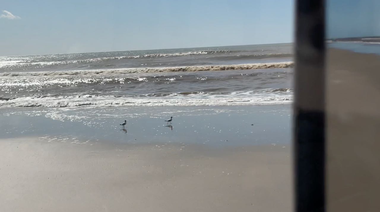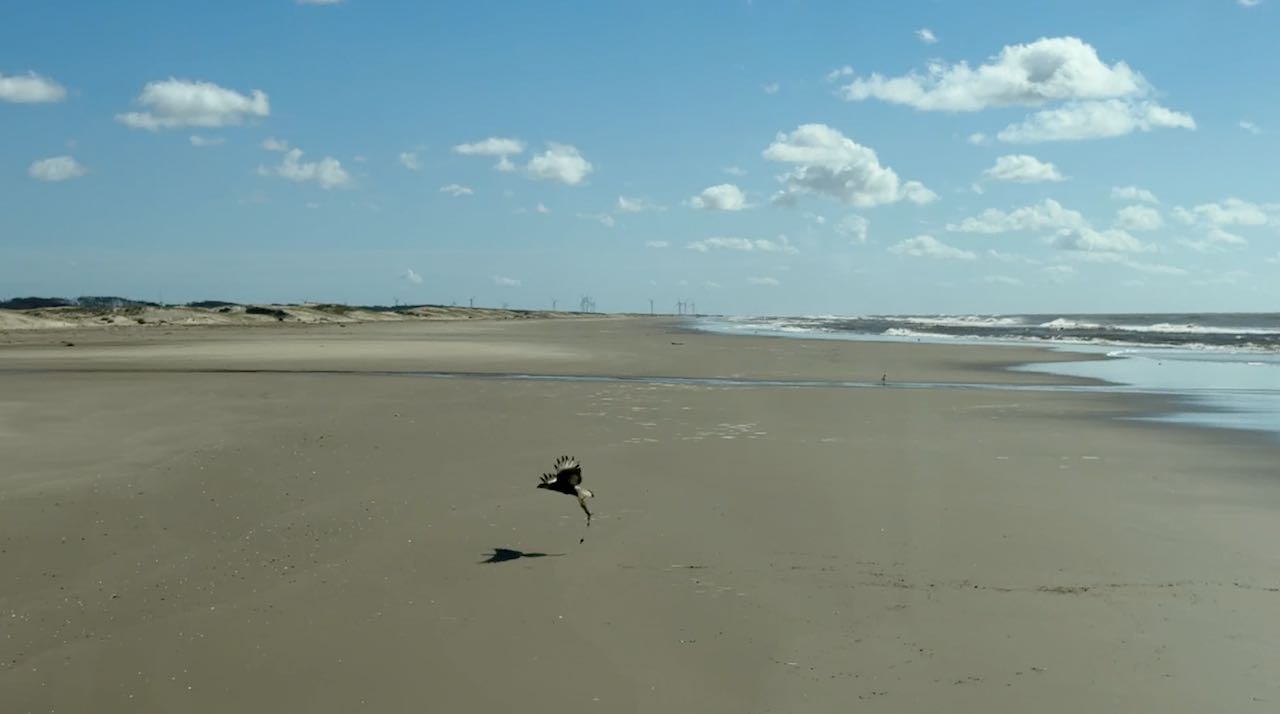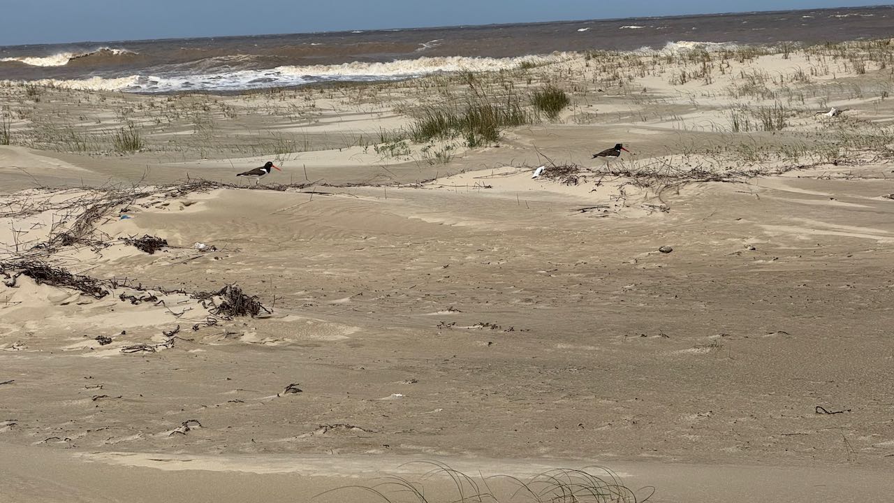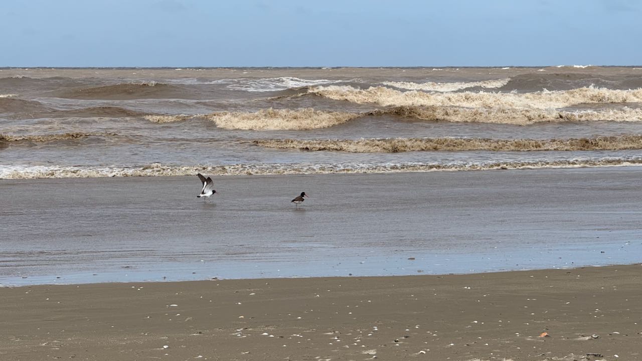 Fremde Tierlaute, unsichtbare Vögel maunzen, im Hintergrund rauschen die Wellen