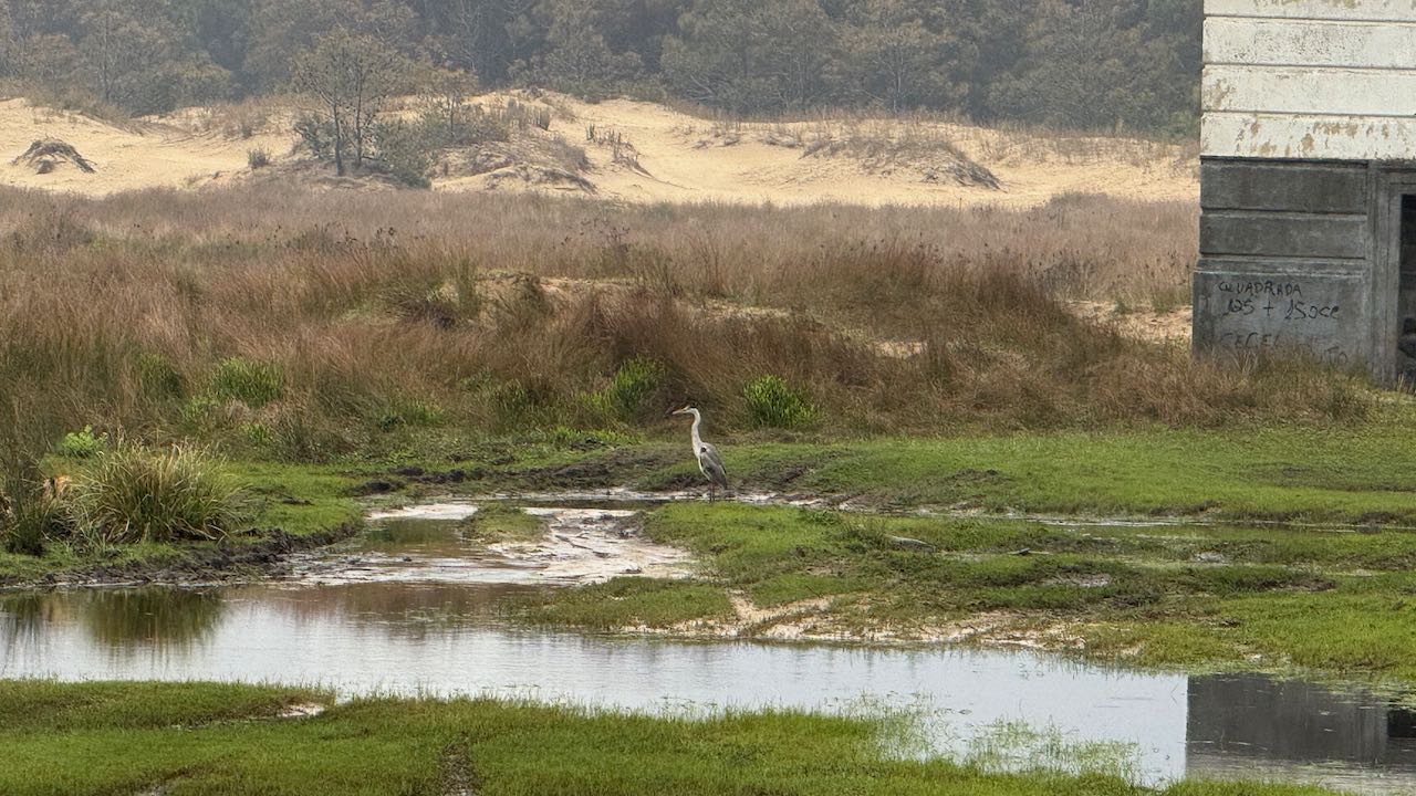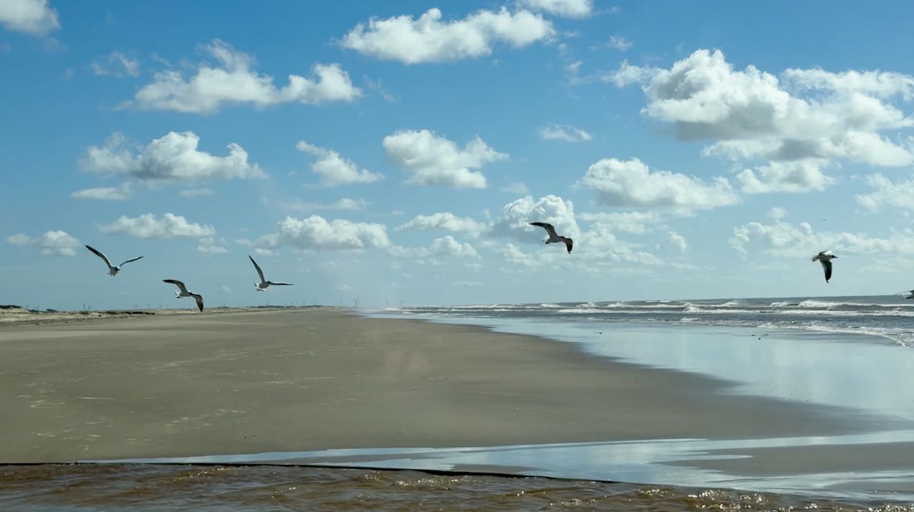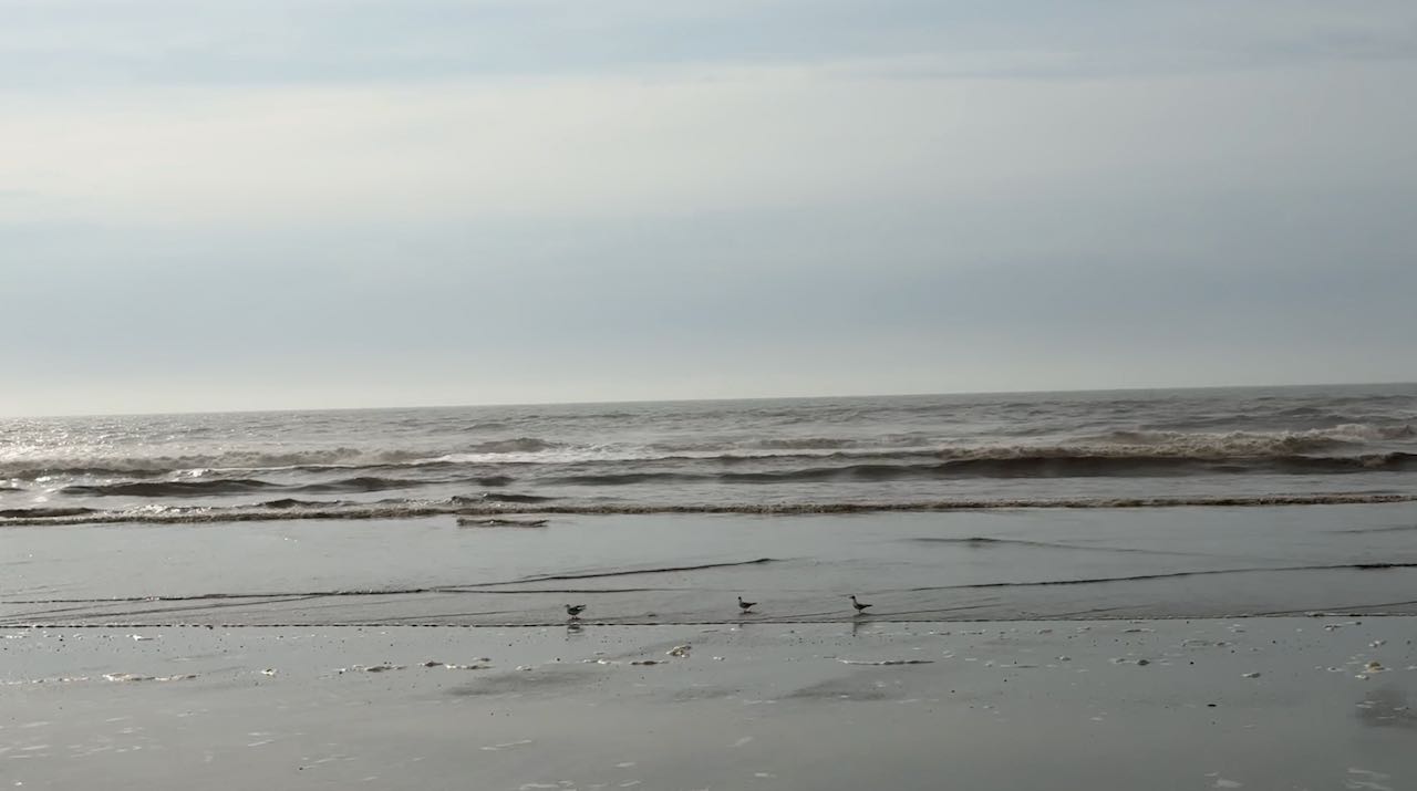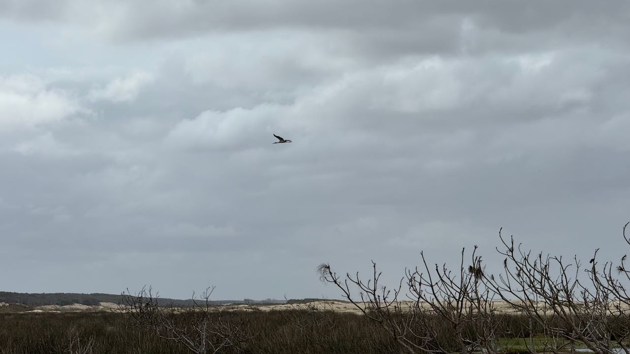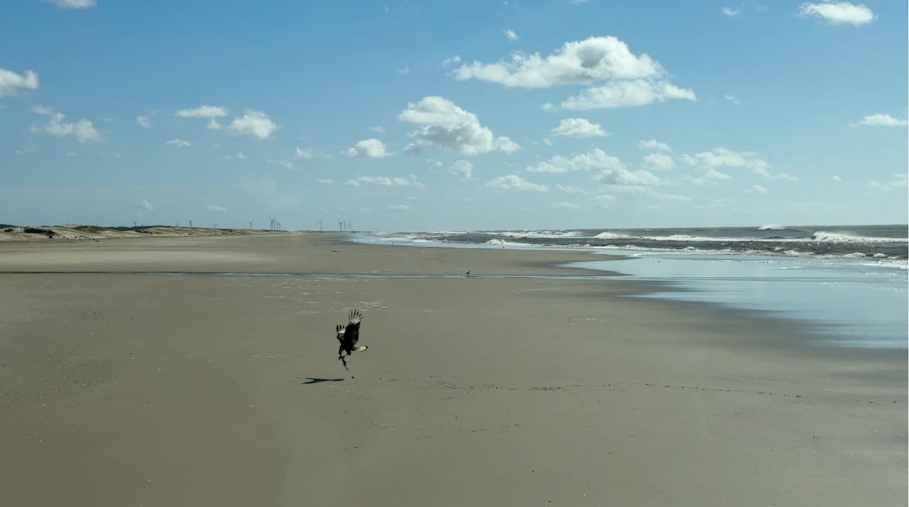 Fremde Tierlaute, unsichtbare Vögel maunzen, im Hintergrund rauschen die Wellen