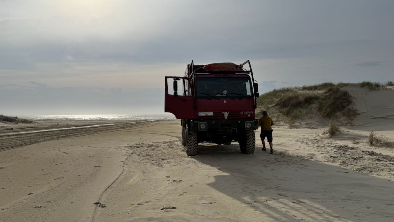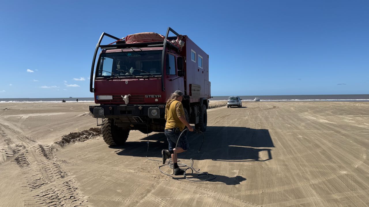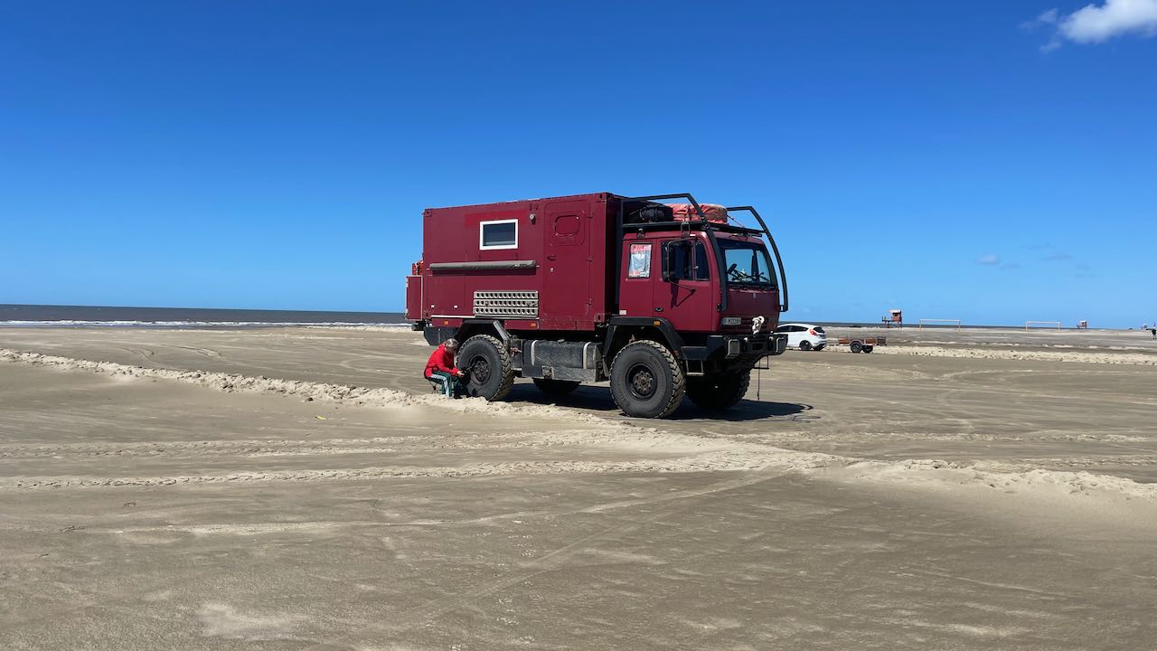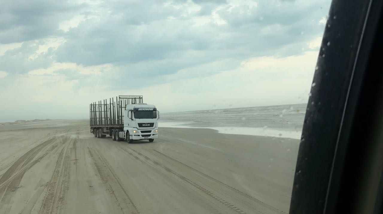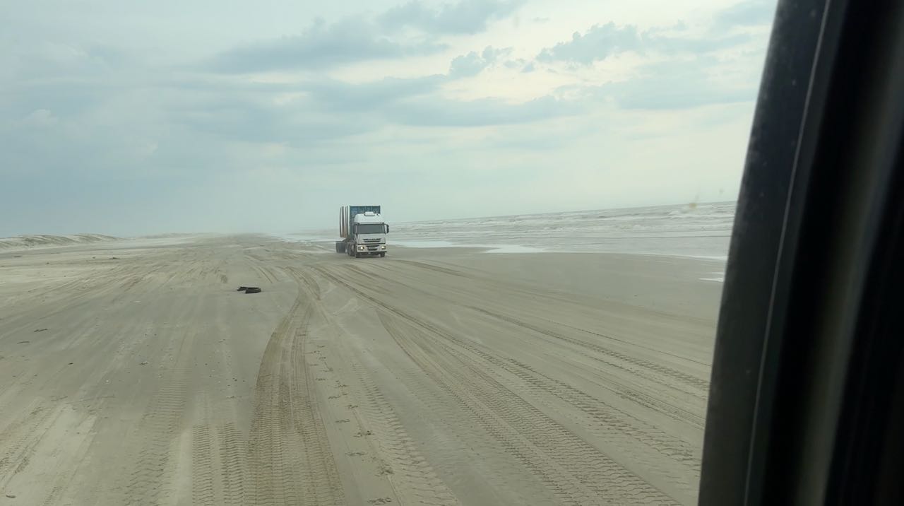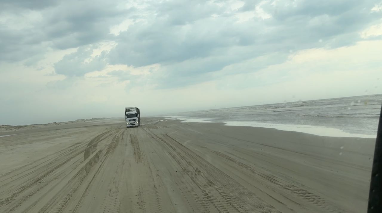 Vom Sturm ist der Sand noch ziemlich aufgeweicht. Die letzten 60 Kilometer Strandpiste.