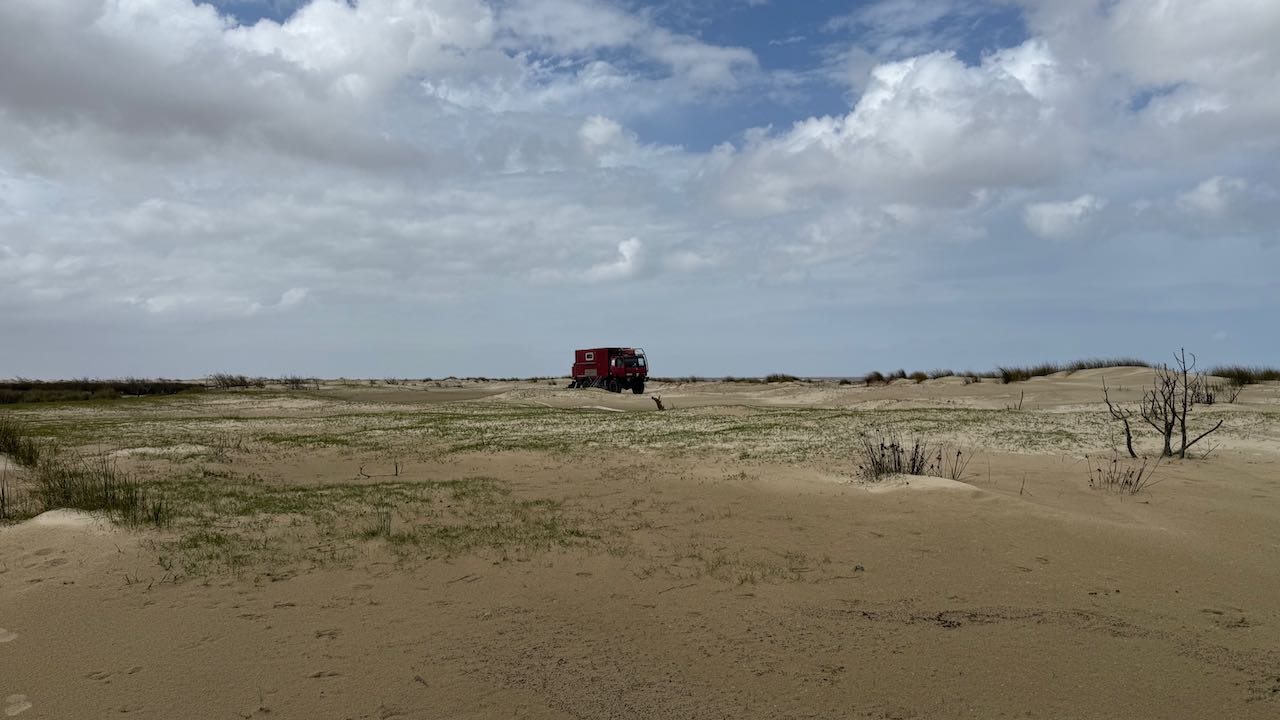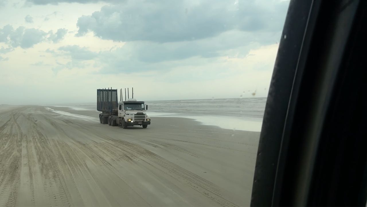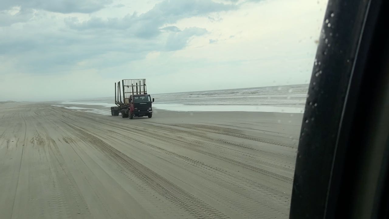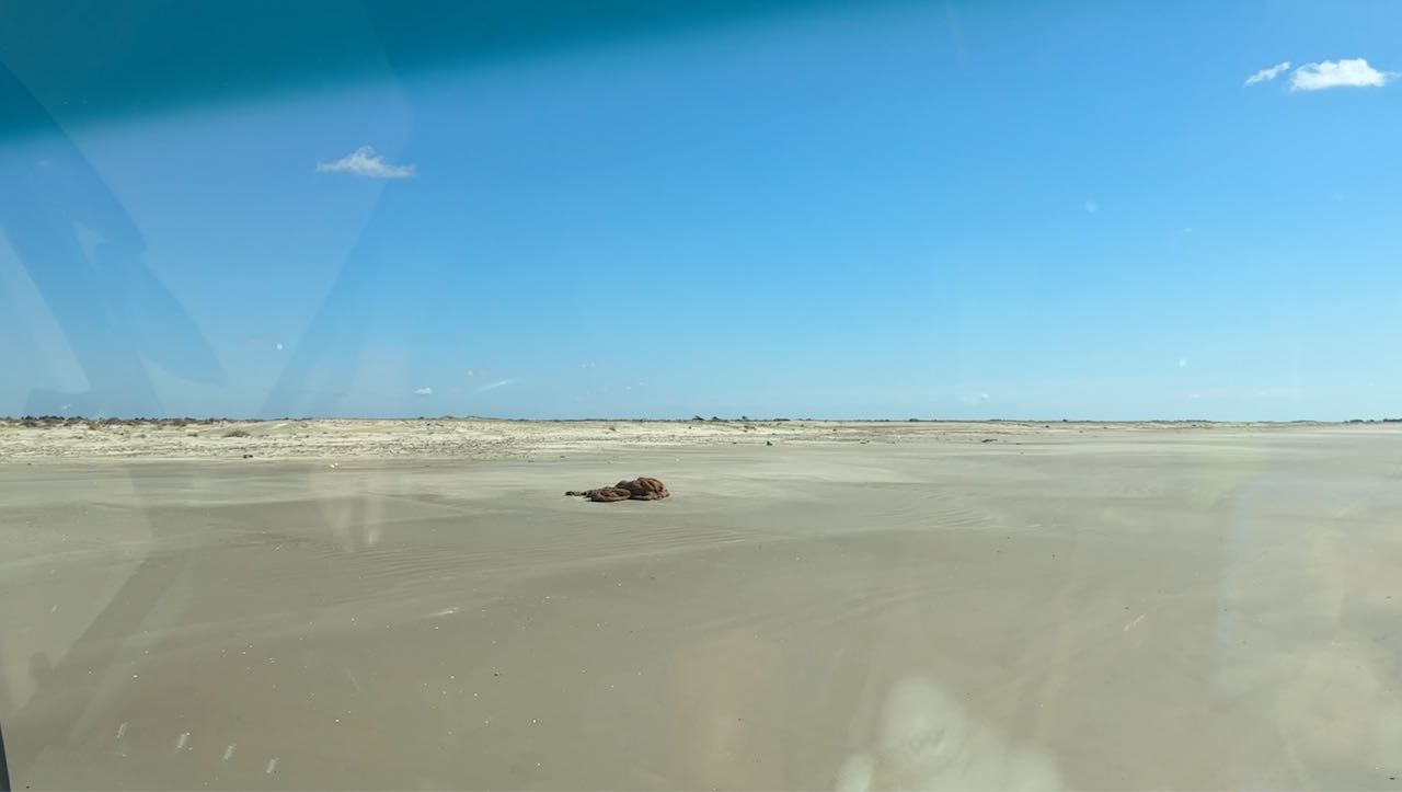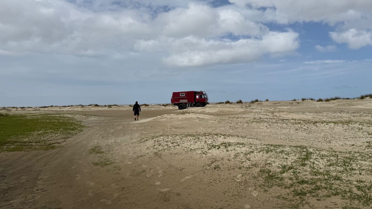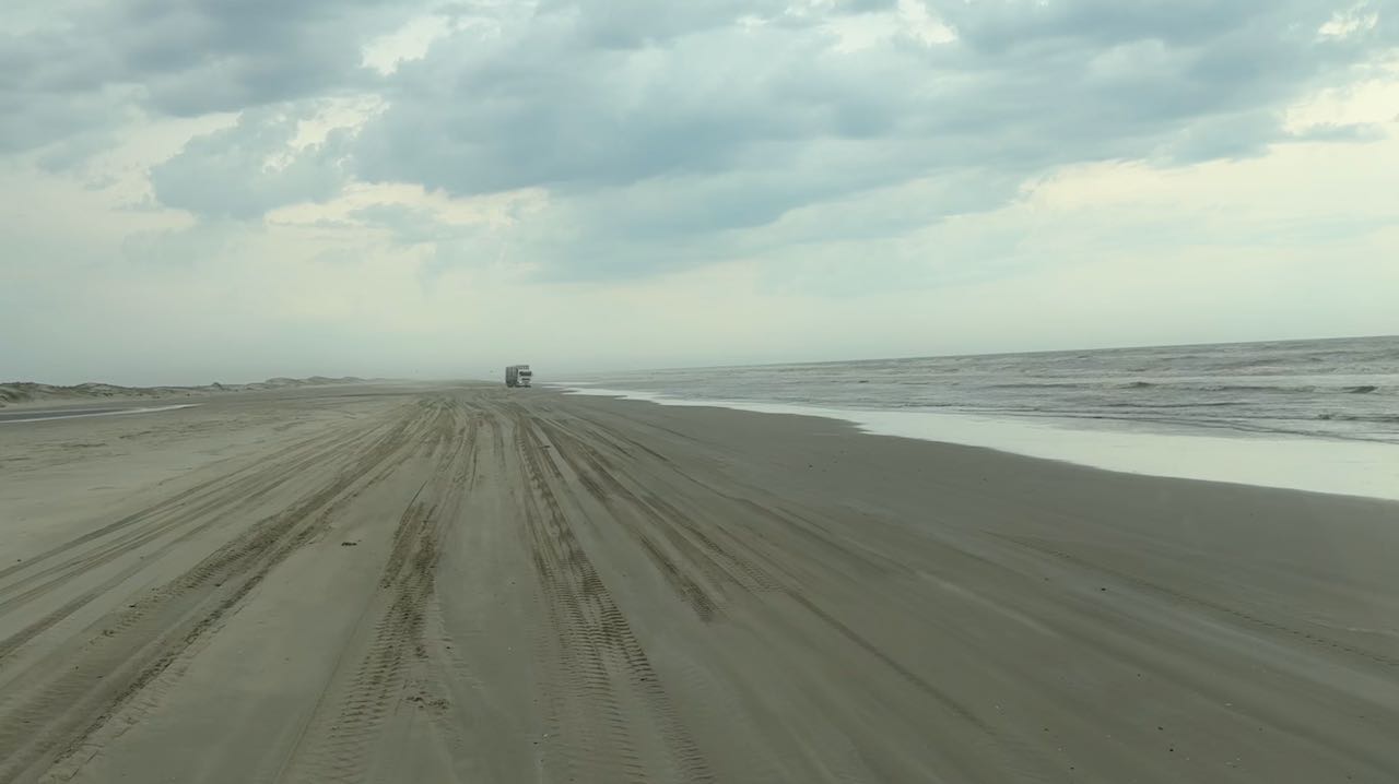 Vom Sturm ist der Sand noch ziemlich aufgeweicht. Die letzten 60 Kilometer Strandpiste.