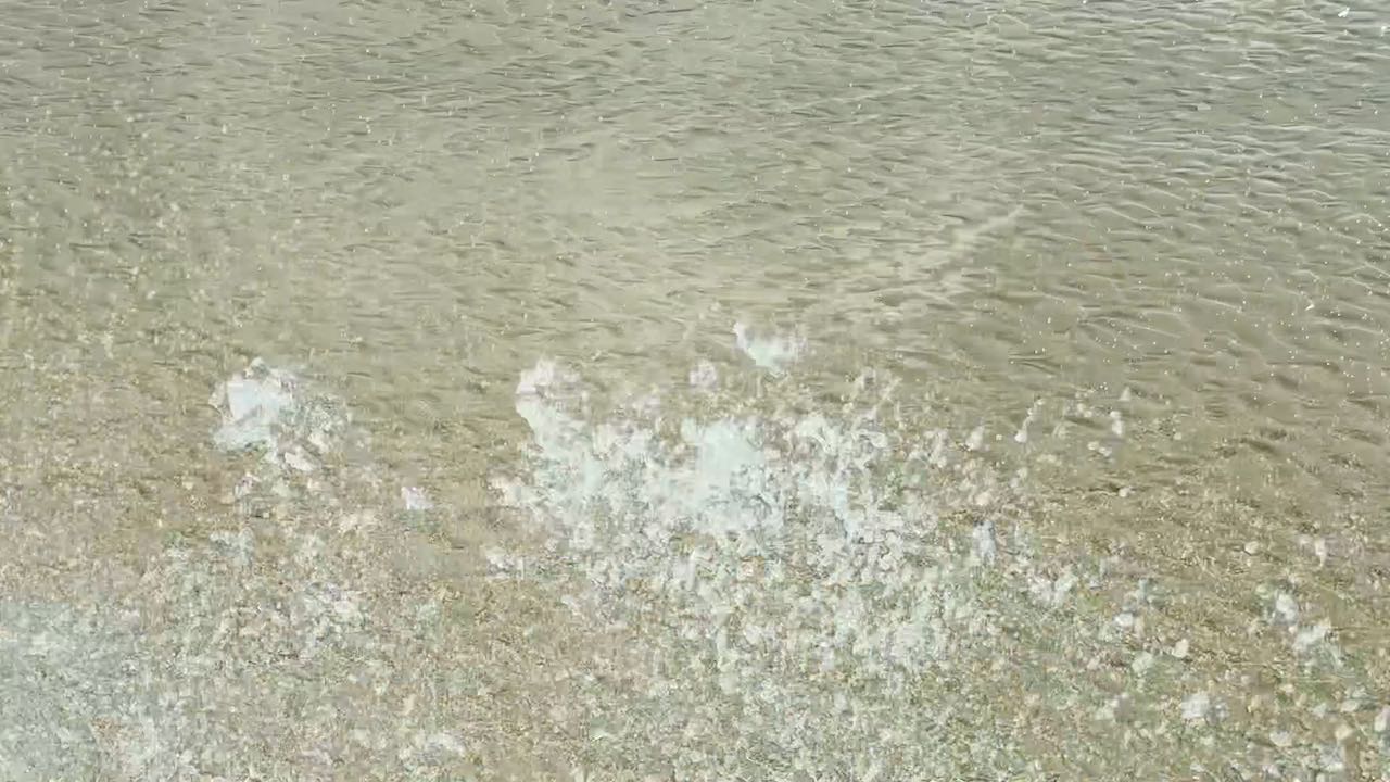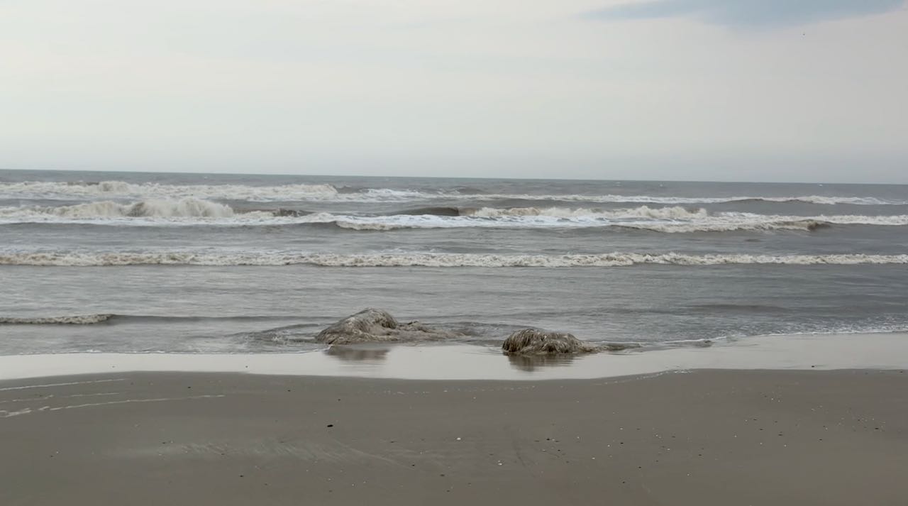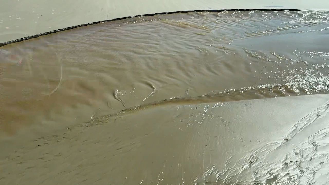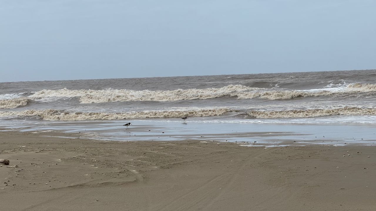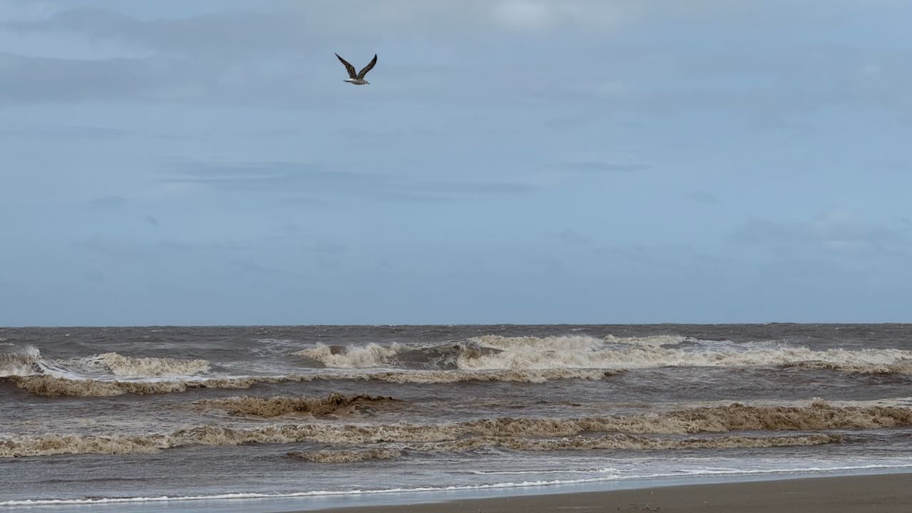 Wellen rauschen heran, manche ganz braun vom aufgewühlten Sand