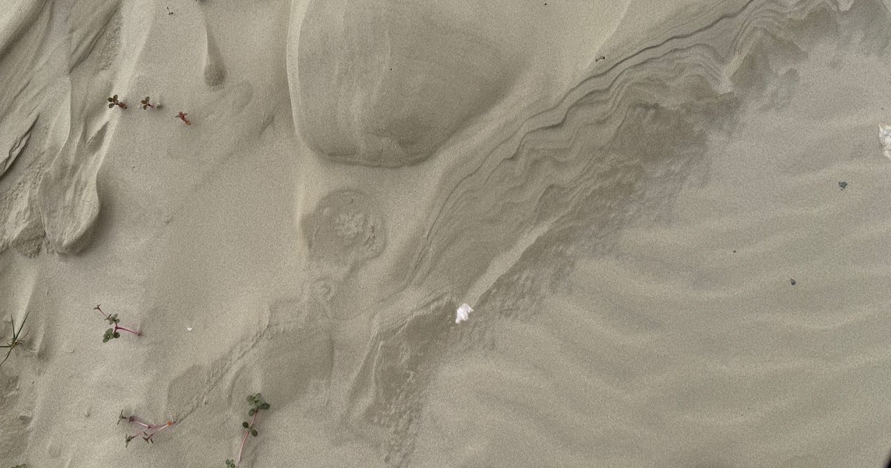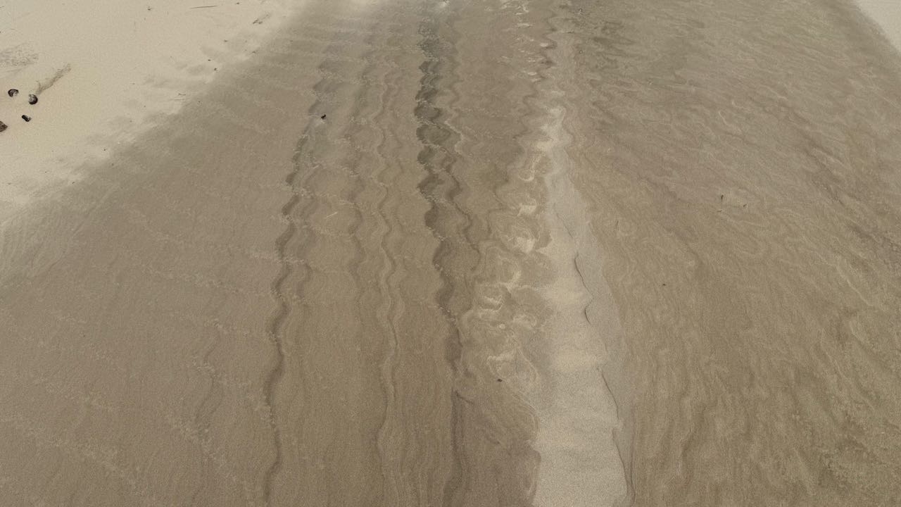 Große Reihertapsen und perfekt symmetrische Sandwellen, geformt von Wind und Wasser