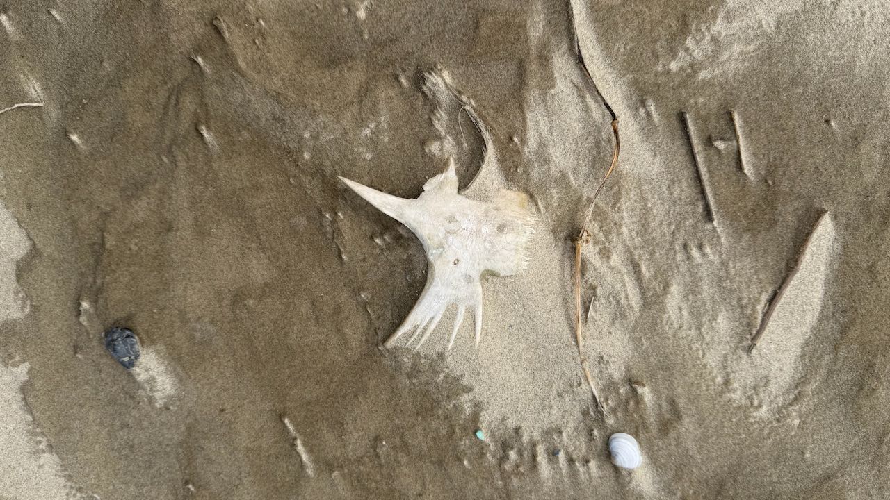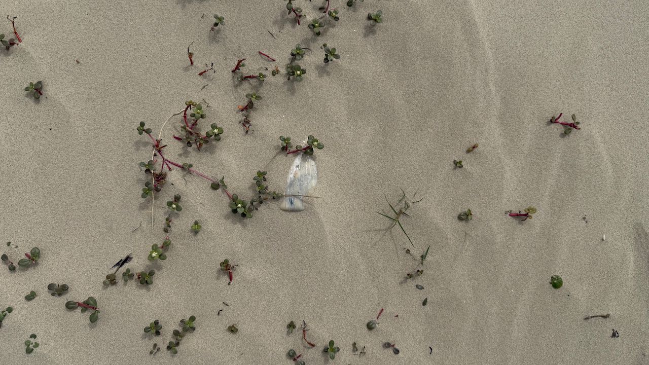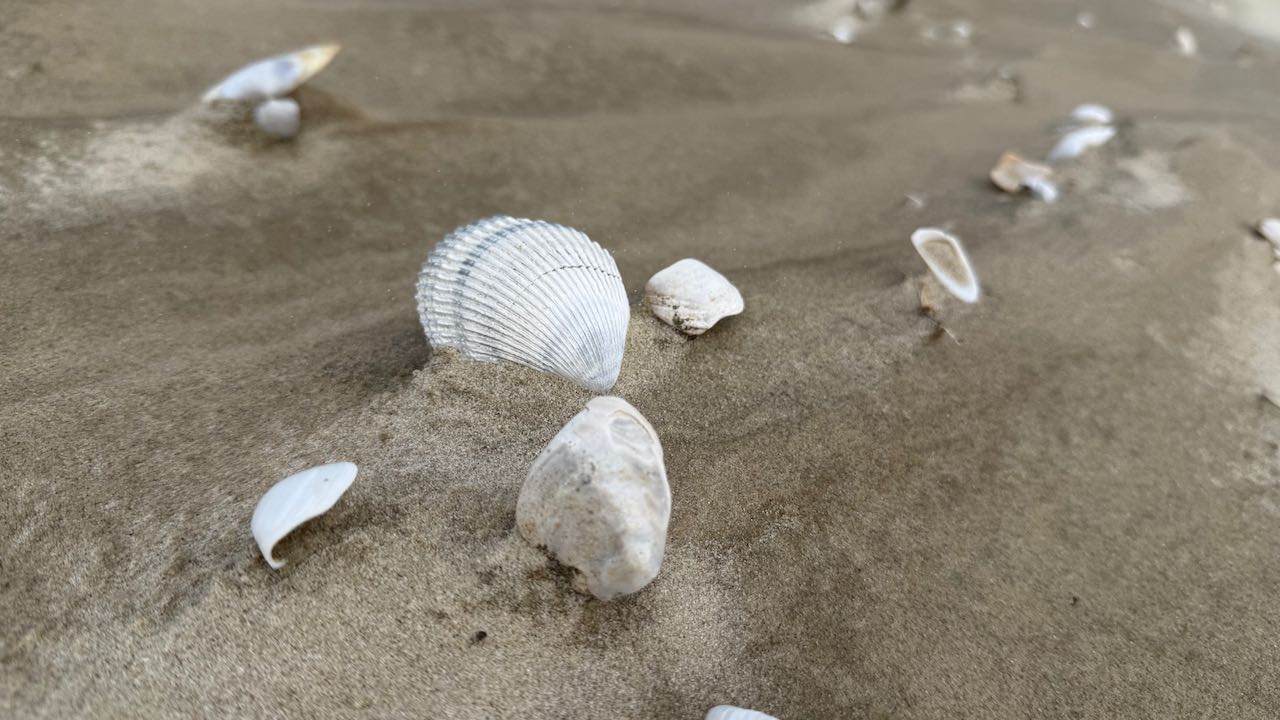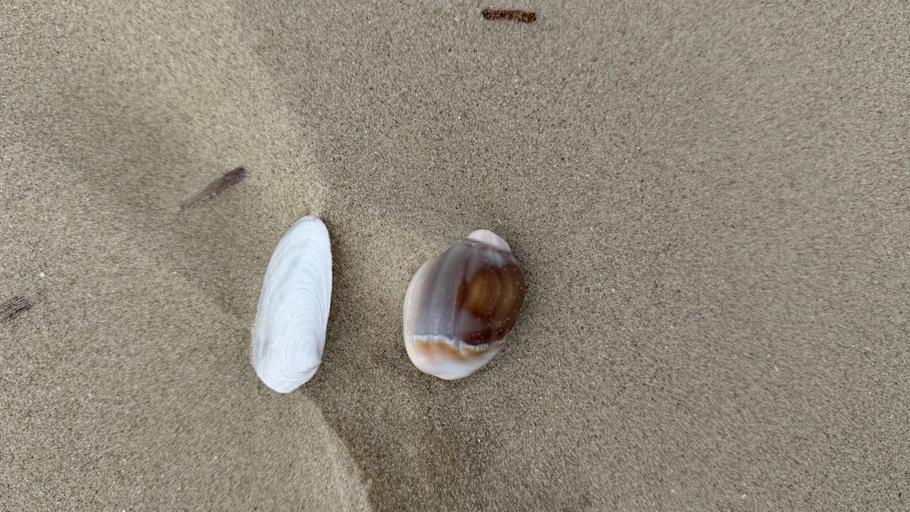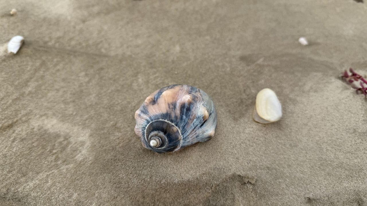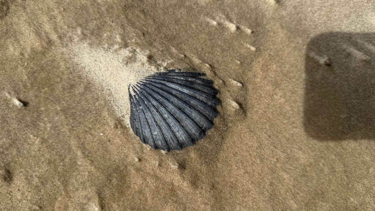 Manchmal sieht man nur ein winziges Stückchen vom Gehäuse im Sand. Ein bißchen graben…..