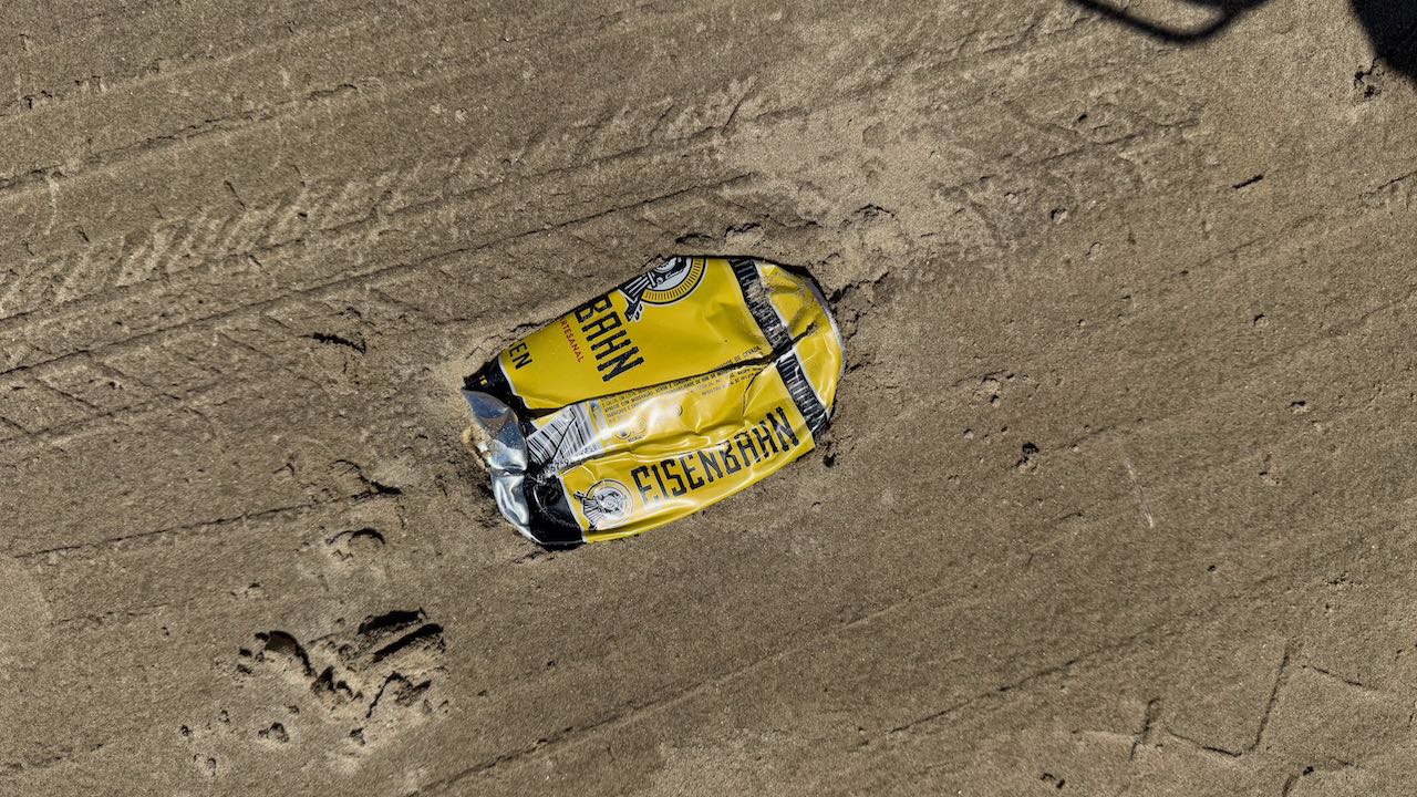 Zum Beispiel eine hübsche Dose Eisenbahnbier und Leute mit Fahrradanhängern die Plastikflaschen vom Strand aufsammeln.