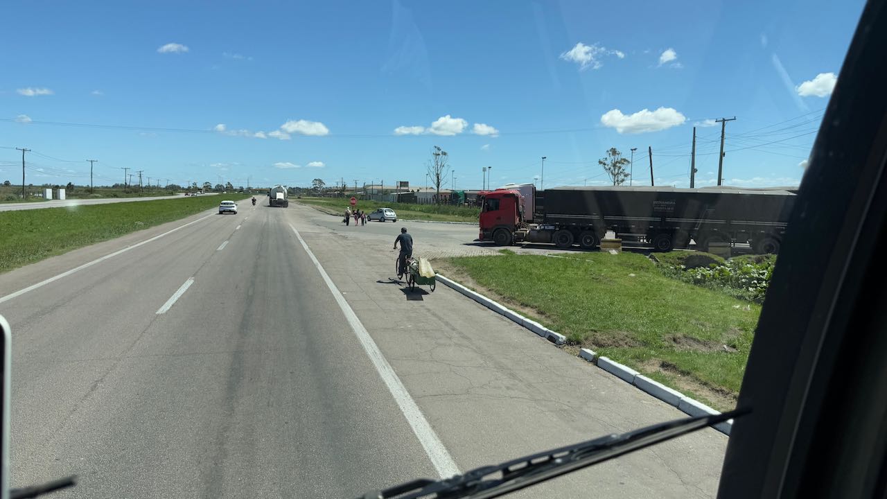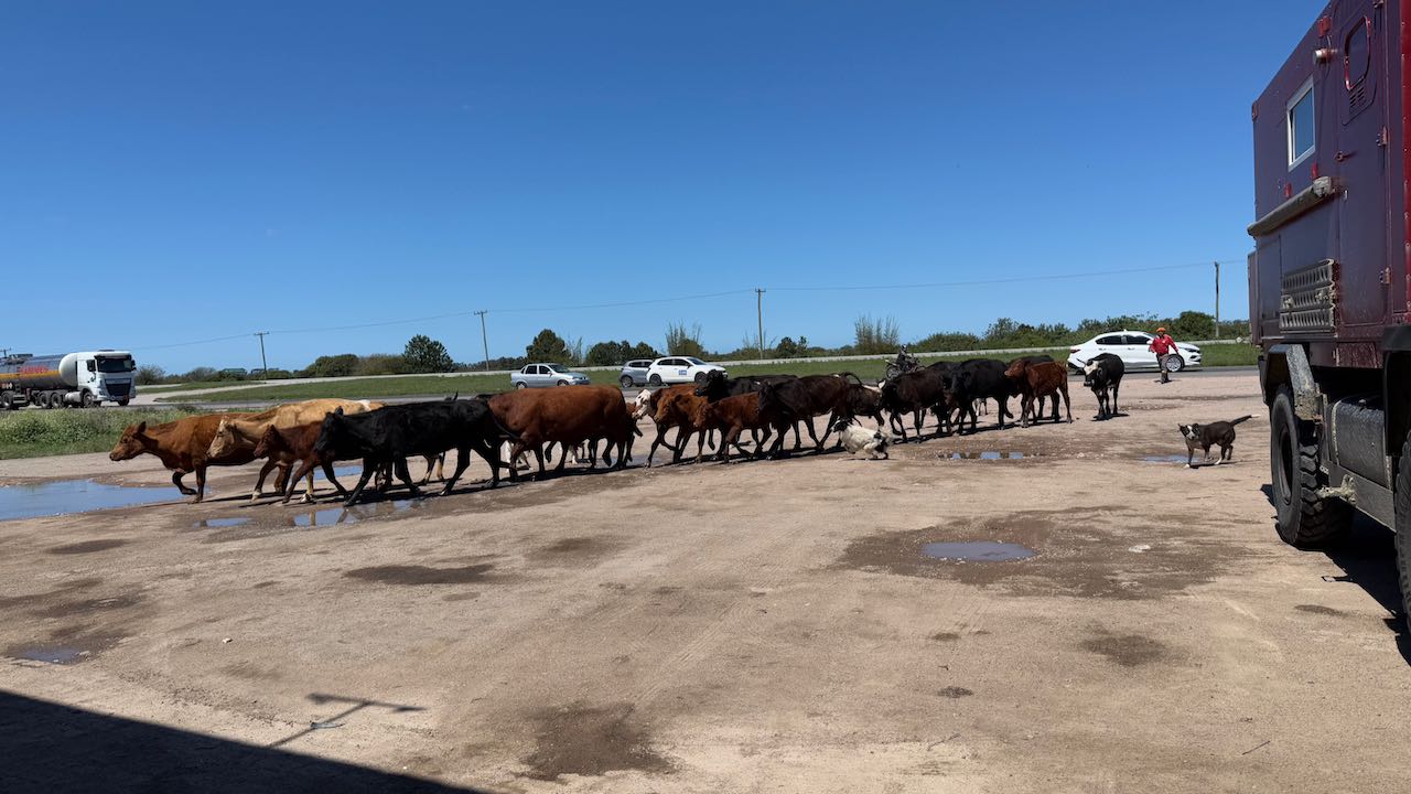 Wir warten. Eine Herde Kühe trottet auf die Schnellstrasse, die Hütehunde bringen alle durcheinander, der verschlafene Hirte rennt hinterher…