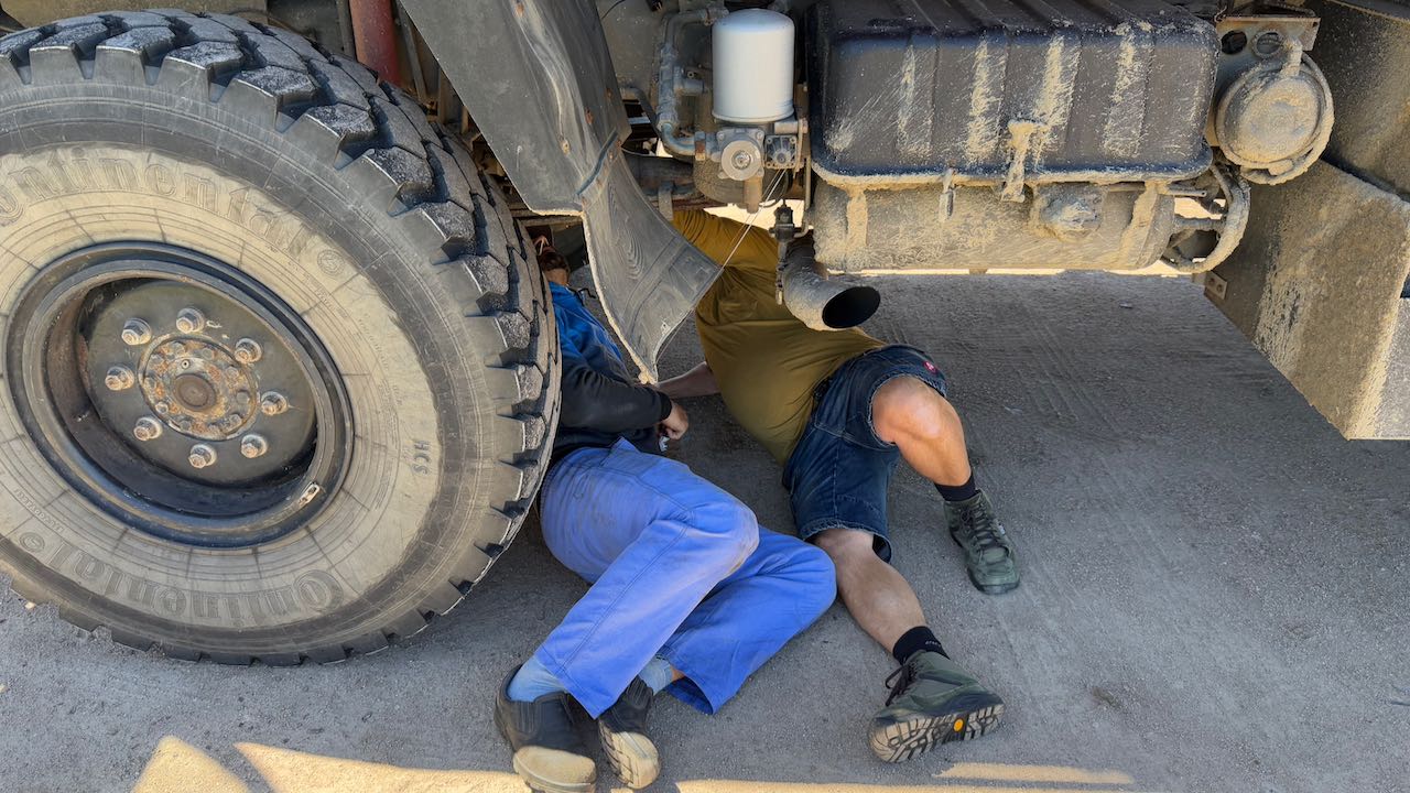 Schichtwechsel beim Reifendienst, Nummer drei. Kalter Wind lässt uns frösteln…