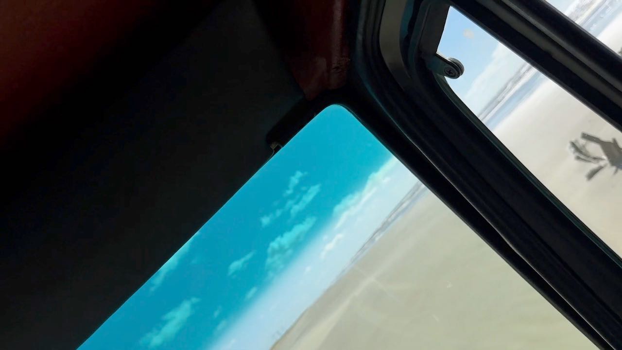 Ein Wrack fängt unsere Aufmerksamkeit, wir übersehen eine Bodenwelle und krachen voll durch……wow, das scheppert….
