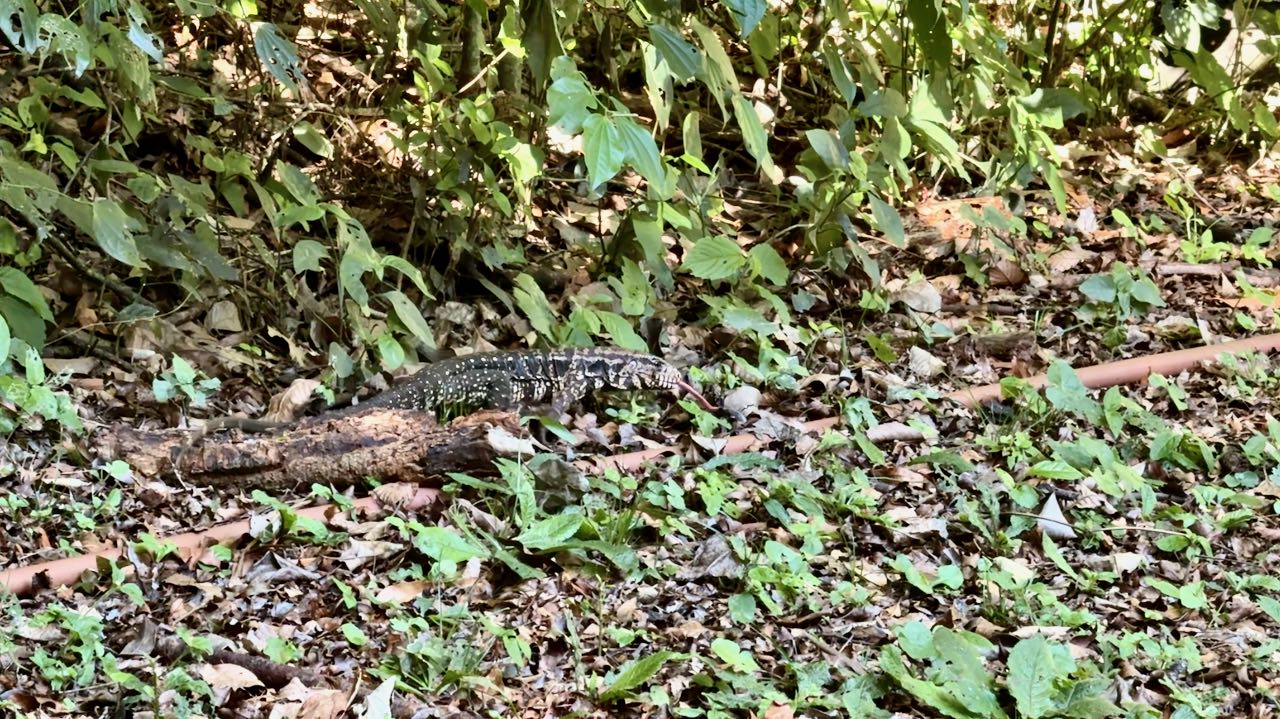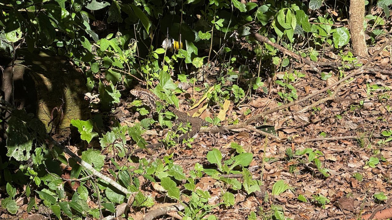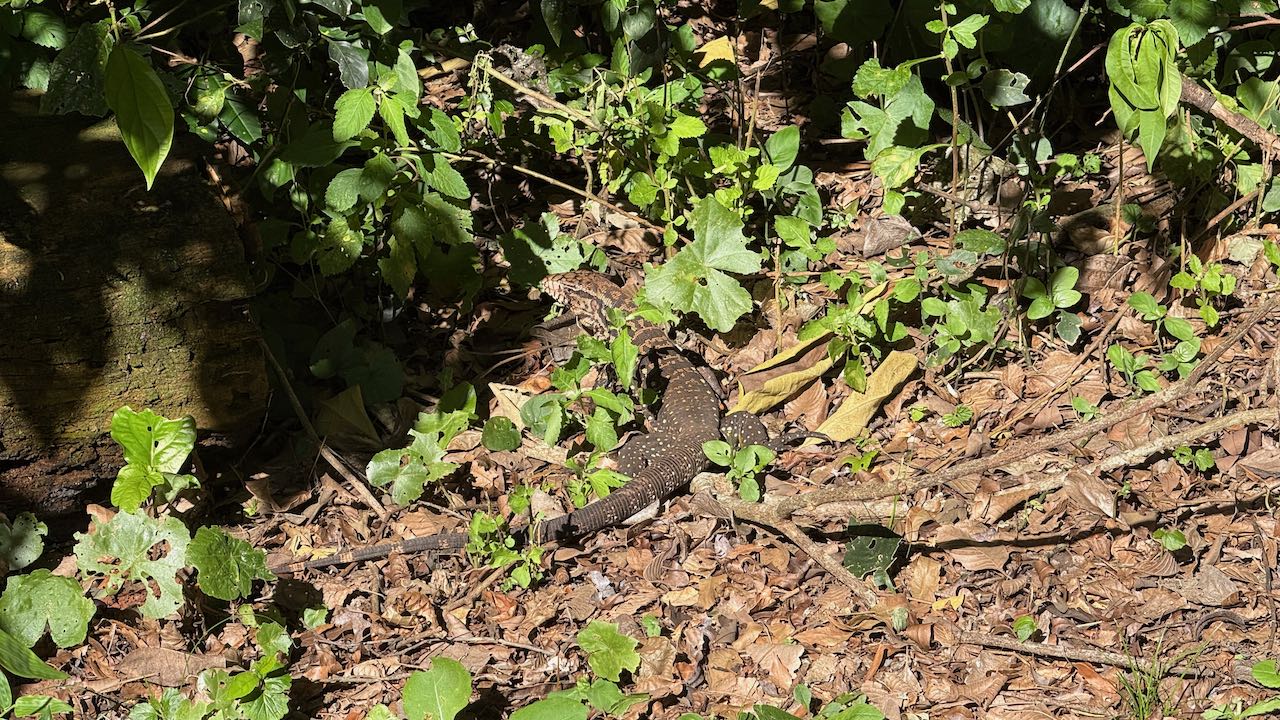 Eine große Echse züngelt um uns herum