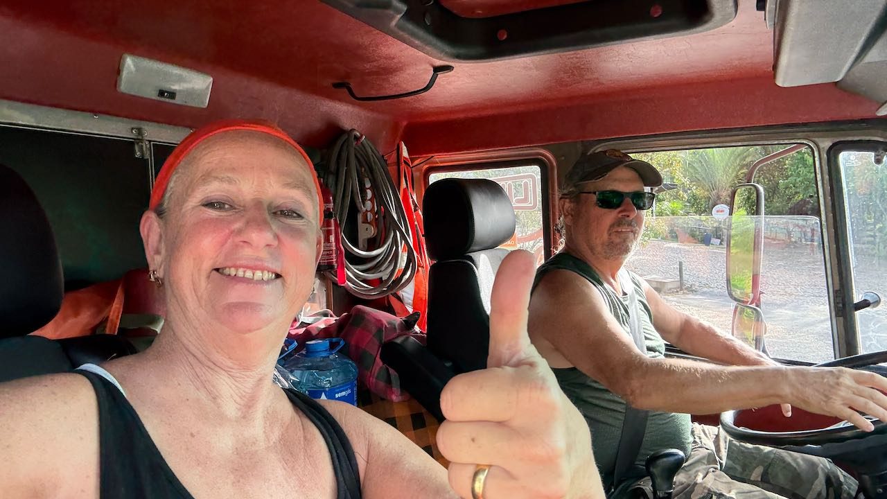 Die LKW-Fahrer sind wie immer sehr freundlich, einer fragt völlig erstaunt: „What are you doing here in the middle of nowhere?!“