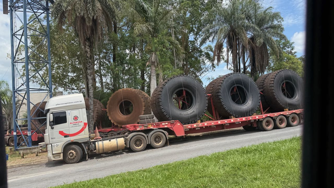 Das sind bestimmt Reifen für Minenfahrzeuge. Würden Rappelkiste aber auch gut stehen…..