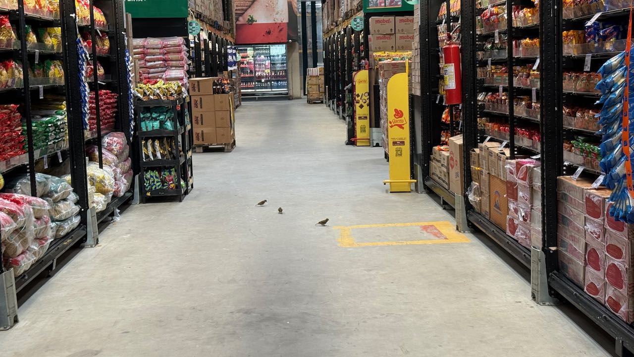 Ein Einkaufsstop nach 4 Stunden Fahrt…Fröhliches Gezwitscher begleitet unseren Einkauf, im Mercado lebt eine große Spatzenkommune.