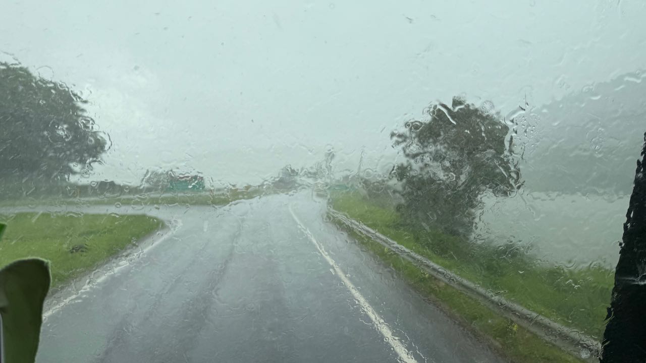 Das Wetter schlägt um, kräftige Regengüsse prasseln runter. Im Regennebel passieren wir die ersten Seen der Lagoa Dique.